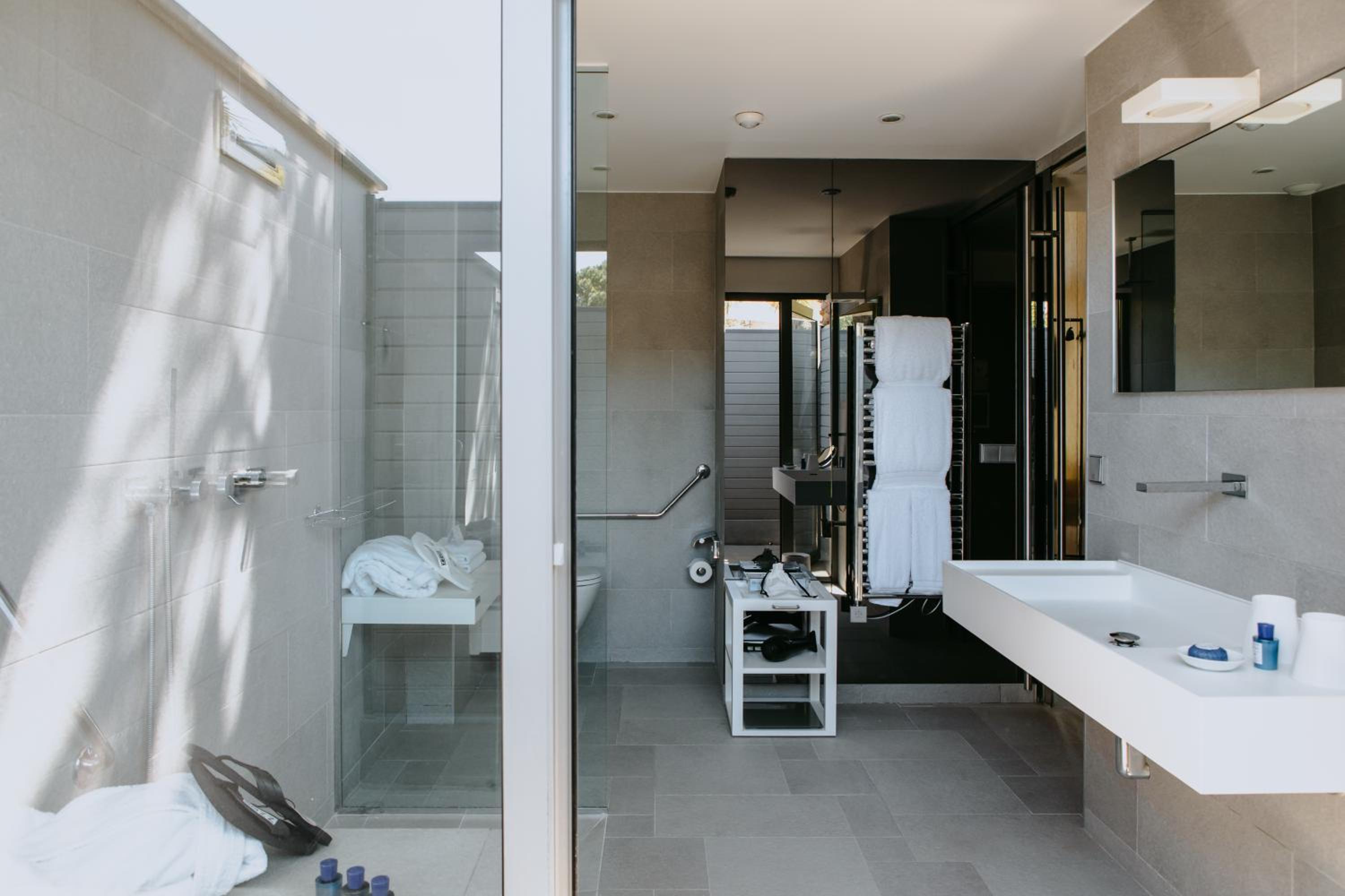 The biggest disappointment of our stay was the bathroom design. It felt impractical and poorly thought out. The glass door offered no privacy at all, and the oversized outdoor shower took up a lot of space without adding any real value. Even worse, the tub-and-shower setup in our room was so poorly designed that every use left one to two inches of standing water covering the entire bathroom floor. I had to use all the towels just to keep the water from coming into the rest of the room.