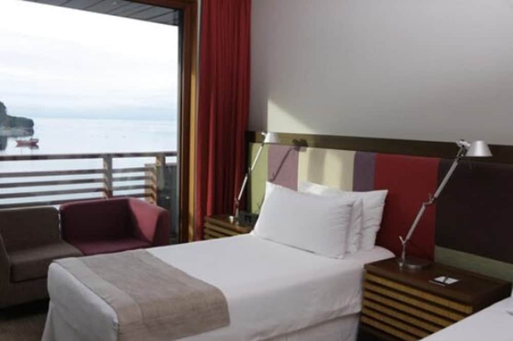 Las habitaciones se encuentran armoniosamente ubicadas frente al lago Llanquihue, con una hermosa vista a la bahìa, pero se ve que no han sido remodeladas en bastante tiempo. Las alfombras se ven algo sucias y la calefacción/aire acondicionado presentó problemas durante nuestra estadía, la pieza estaba extremadamente caliente. El estacionamiento es muy pequeño, incluso vimos una camioneta que rompiò su antena y tuvo que retirarse. Finalmente, la comida del restaurante no es de buen nivel, bastante estándar, así como el desayuno. Se ve que falta personal en el lugar, las filas de espera para la comida, etc, son muy largas y lentas. El personal es muy atento y tiene muy buena actitud, lo que soluciona bastante de la mala experiencia por las instalaciones.