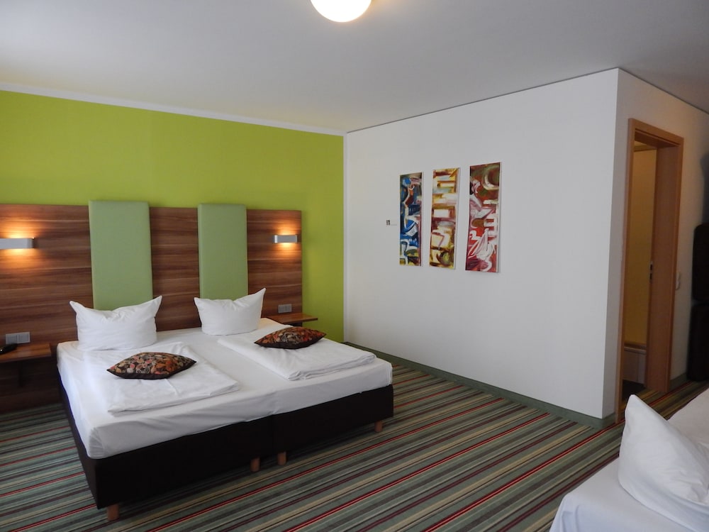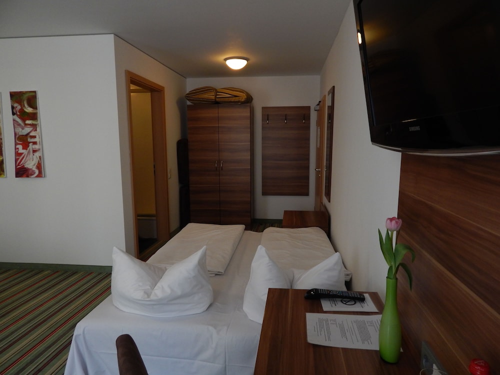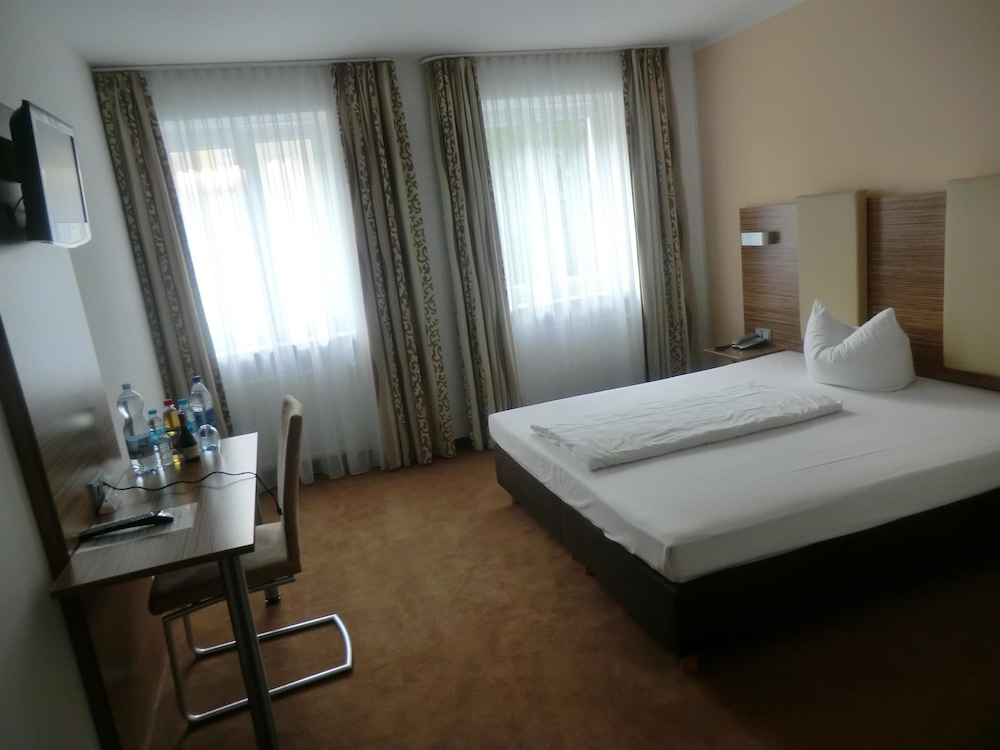 Convenient location near station in immigrant neighborhood. Rewe grocery store on same block. Walking distance to Altstadt. Hotel had feel of hostel with private rooms. Our room for 4 was extremely spacious though. Condition was basic and somewhat aged but clean.