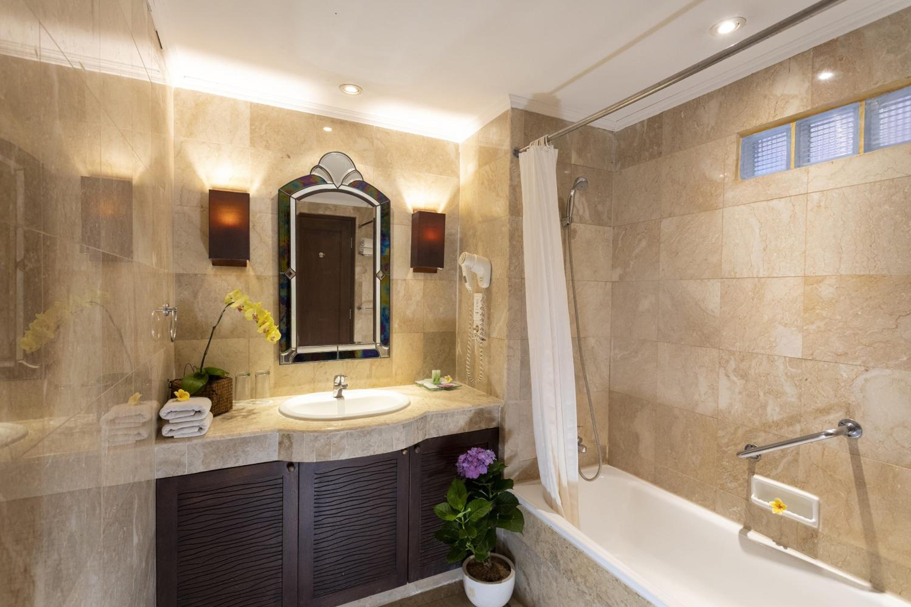Savour delicious wood-fired pizzas and a variety of cuisines at Pandan Bali Restaurant or unwind with snacks and drinks at Jepun Bar. With a lobby lounge and proximity to the beach, guests can enjoy a perfect blend of dining and entertainment options during their stay.