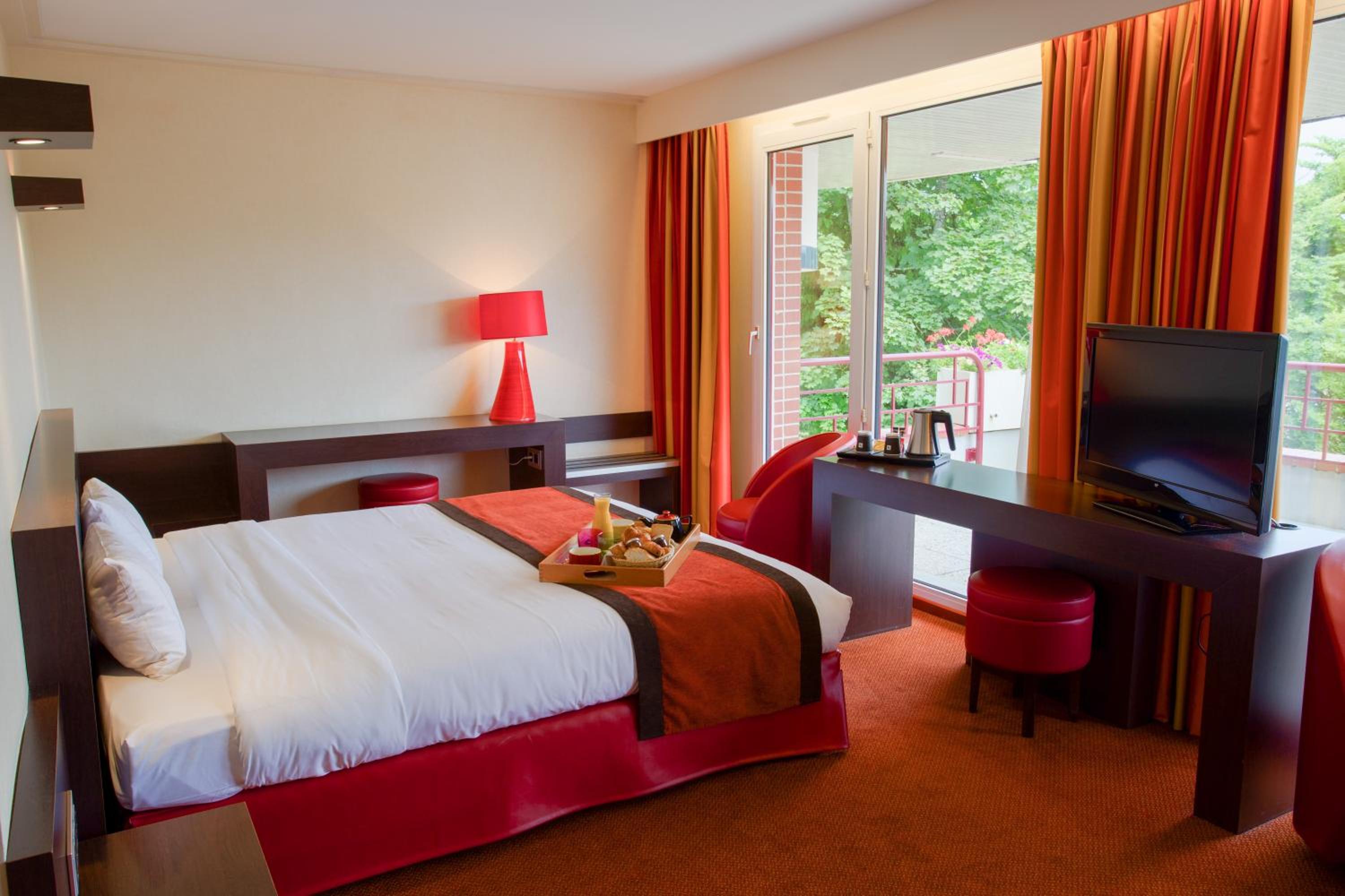Escape to Hôtel Du Béryl for a tranquil retreat by the picturesque Lake Bagnoles de l'Orne. Indulge in the cozy rooms and suites offering stunning views of the lake or forest, complete with the option of plush bathrobes for added comfort.