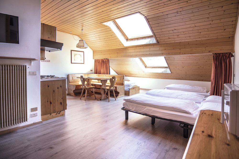 Residence completo di tutto, bar, ristorante, noleggio sci, piscina, sauna, zona wellness e zone relax (e probabilmente anche di altro che in un weekend non abbiamo notato). Monolocale ristrutturato molto carino.