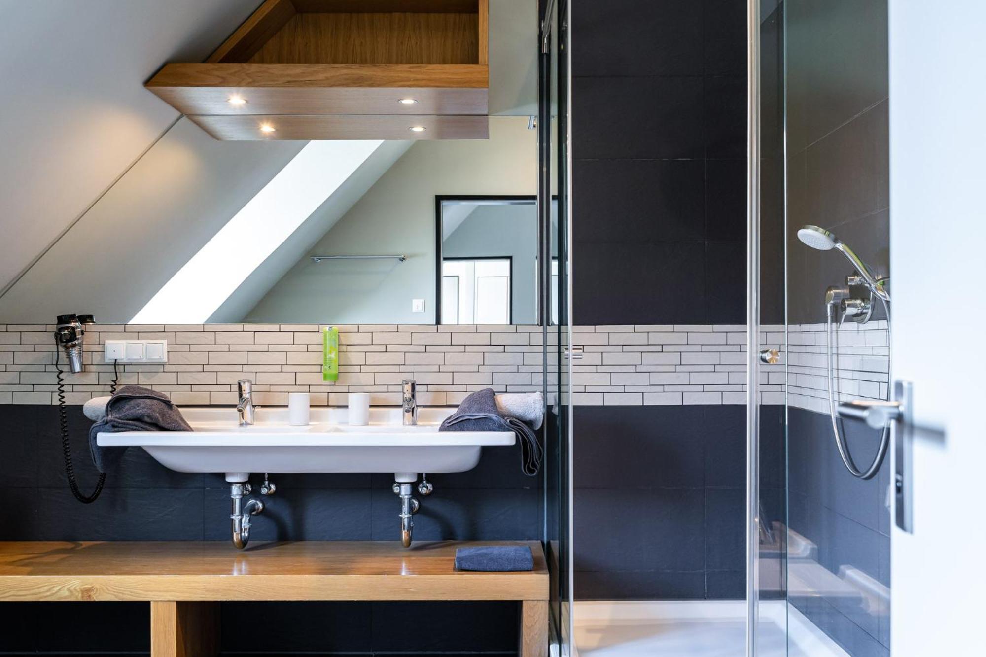 Großes Design Badezimmer mit sehr großer Dusche, inklusive Pflegeprodukte, weiche Handtücher, hochwertiger Föhn.