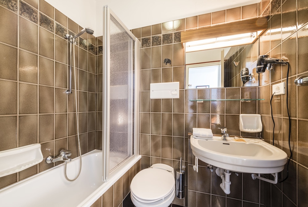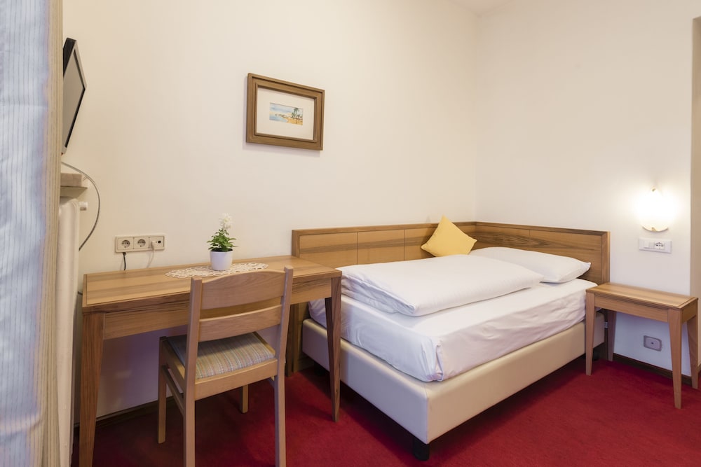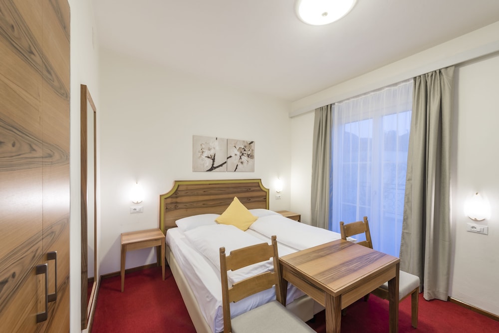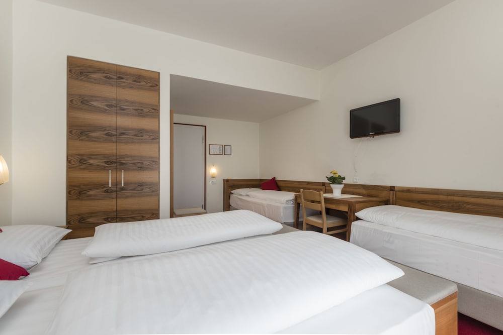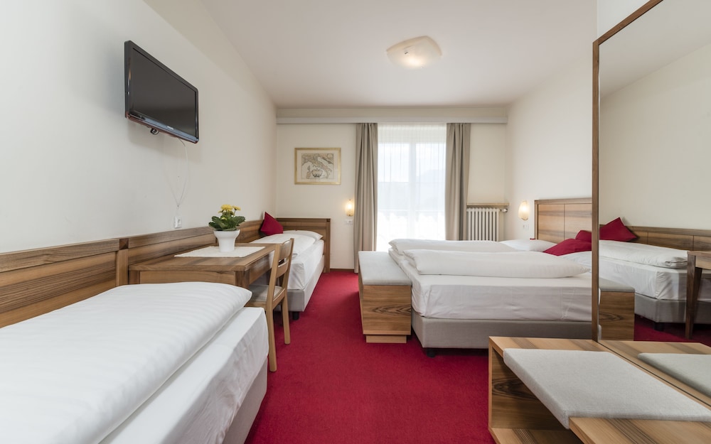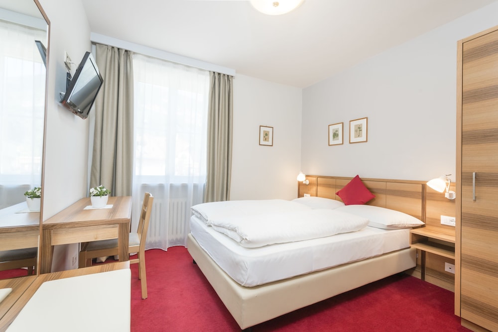 Extremely unfriendly reception - older lady really poor customer service. The basin water outlet (plug hole) in the bathroom was broken so 2 people came to look finally two hours later a plumber. In the meantime asked us if we’d like another room it would be €15 (and smaller room) . Small room, air conditioning unable to switch off or manage temperature as lowest setting was 23 deg on a very hot day! No extras such as a safe, small bar fridge, kettle or cupboard. The room smelled as if carpet still had stale smoke smell, although non smoking room. No mention of South Tyrol Guest Pass on check in. Breakfast mediocre. I would not recommend.