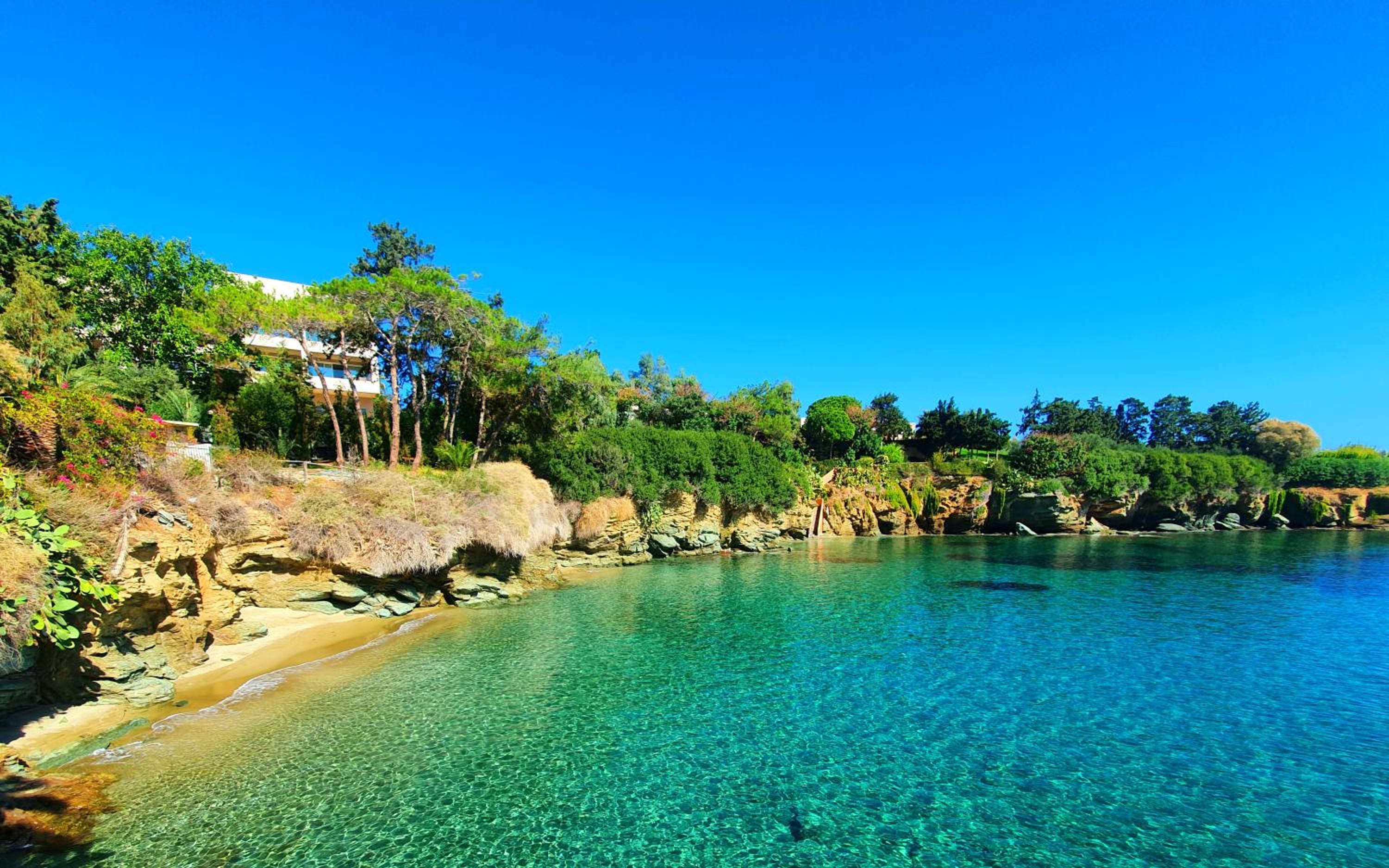 Giorgios, the owner, is an amazing person, always available for all, and his suggetions have been always perfect. The building and his area are very relaxing, many trees, quite, a nice swimmingpool to relax and drink something. also a Jacuzzi on the roof make this familiar hotel very nice. Position is perfect...5 min to the sea and shop. Room has a kitchen so youy can cook in case. We have a very good time and also a very nice relationship . thank you Giorgios!!!