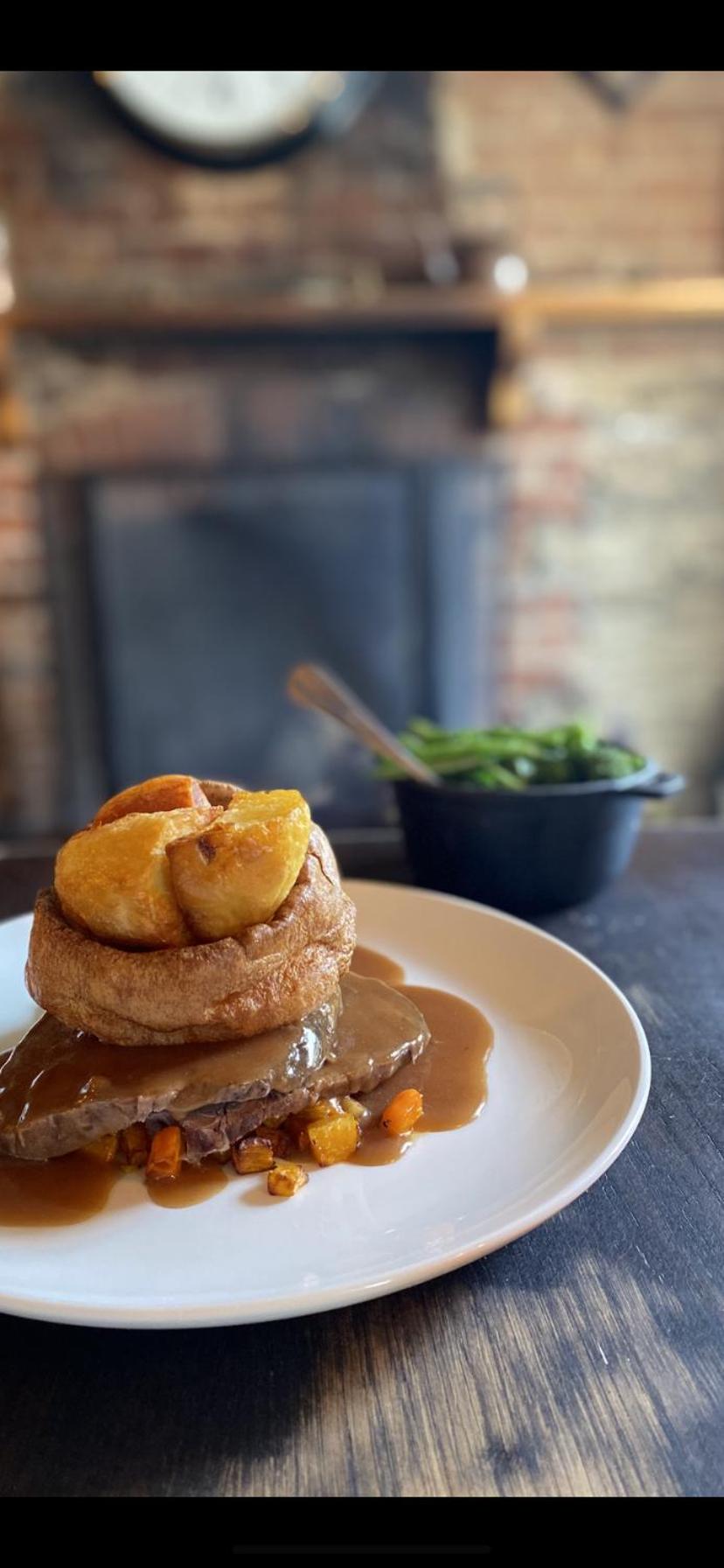 Food in the pub was excellent.