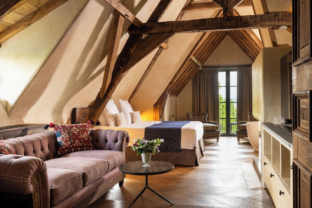 We were in the smaller side building in a 1st (2nd in the U.S.) floor room. It was very well appointed and had views over the gardens from the main room and the back garden from the bathroom. The shower was incredible and there is a separate bathtub. The bed was very comfortable and the sitting area cozy. The heating worked very well. It was lovely to make an early coffee and listen to the rain falling under the eaves.