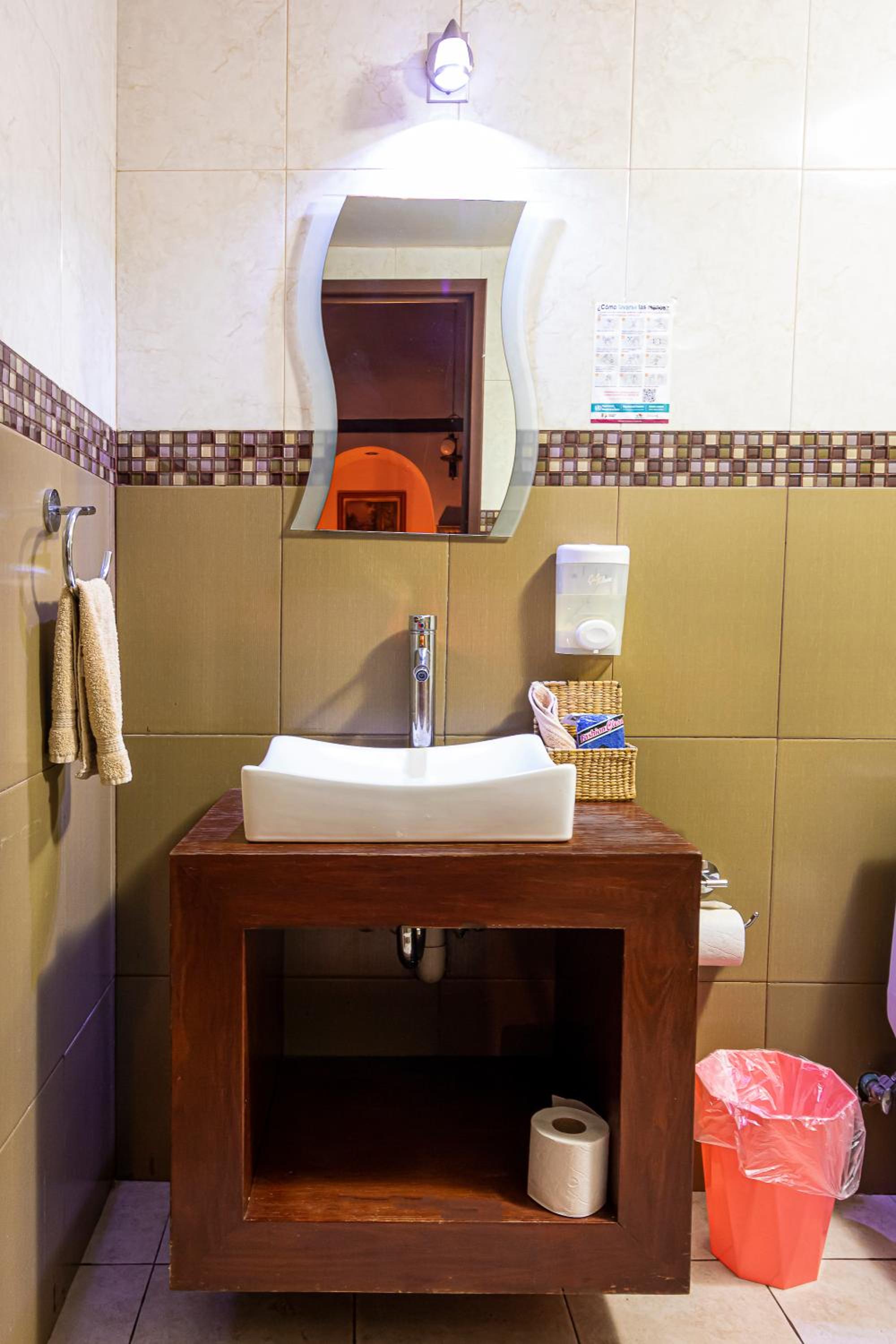 El desayuno estuvo bien, de precio accesible. Te dan café o té de cortesía, ya sea con galletas o pan. Las instalaciones están en muy buenas condiciones. El baño de la habitación estaba súper limpio y la recámara estaba bien equipada, con burro, plancha, closet, caja fuerte y un frigobar.