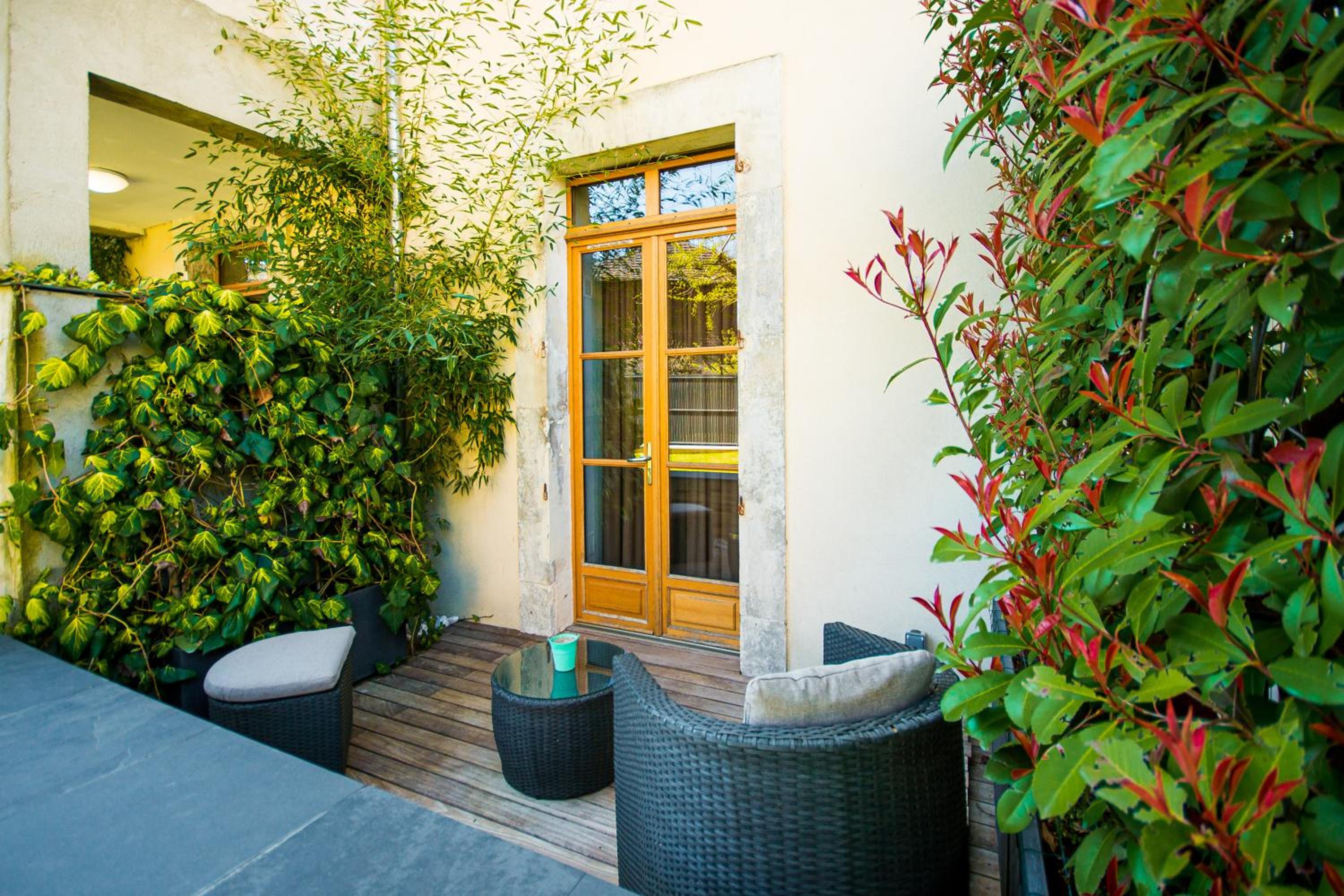 Unwind on the roof terrace surrounded by bamboo plants, offering a serene escape with comfortable outdoor furniture. Start your day with a delightful breakfast in this peaceful setting or sip on regional wines from the bar in the evenings.