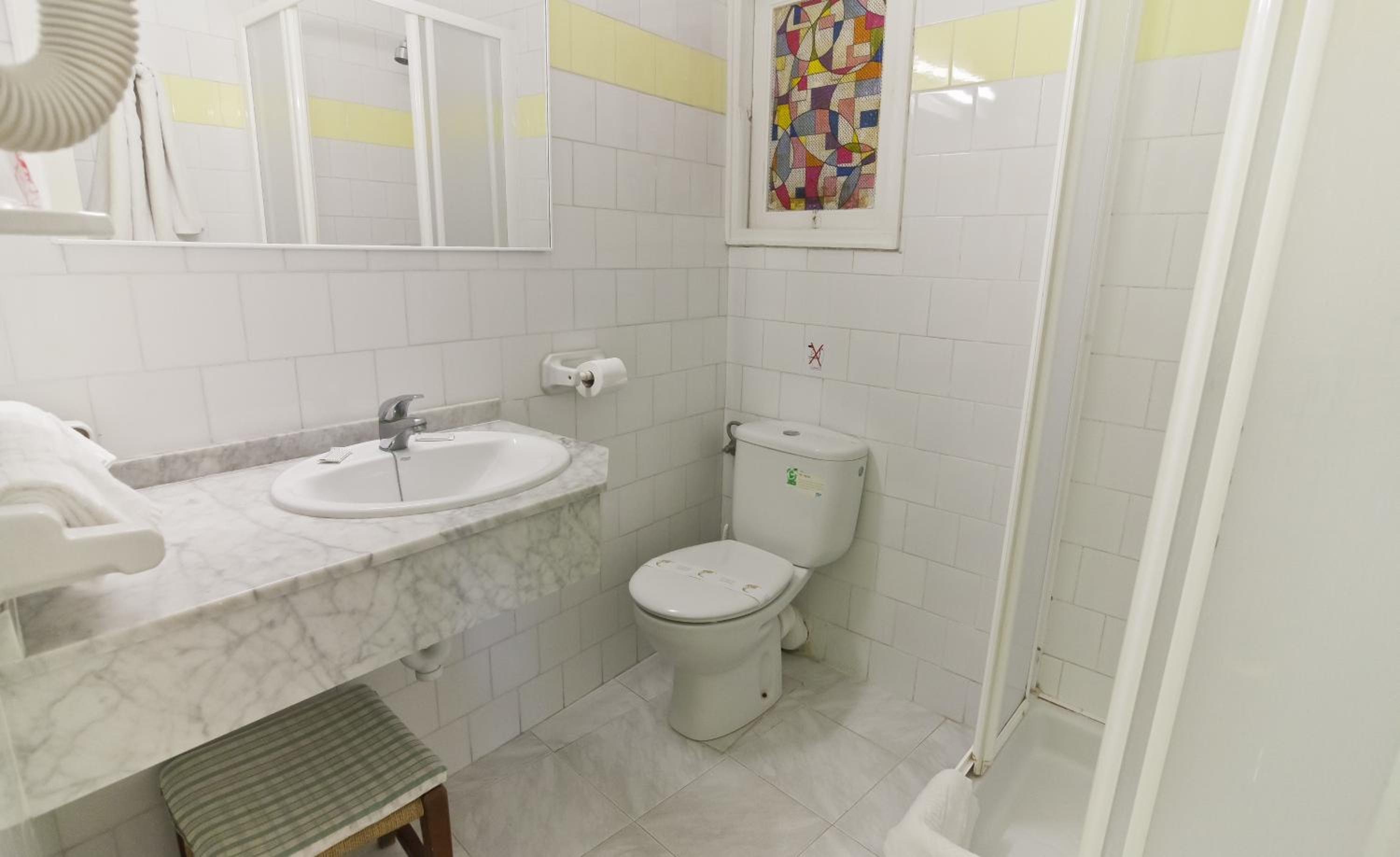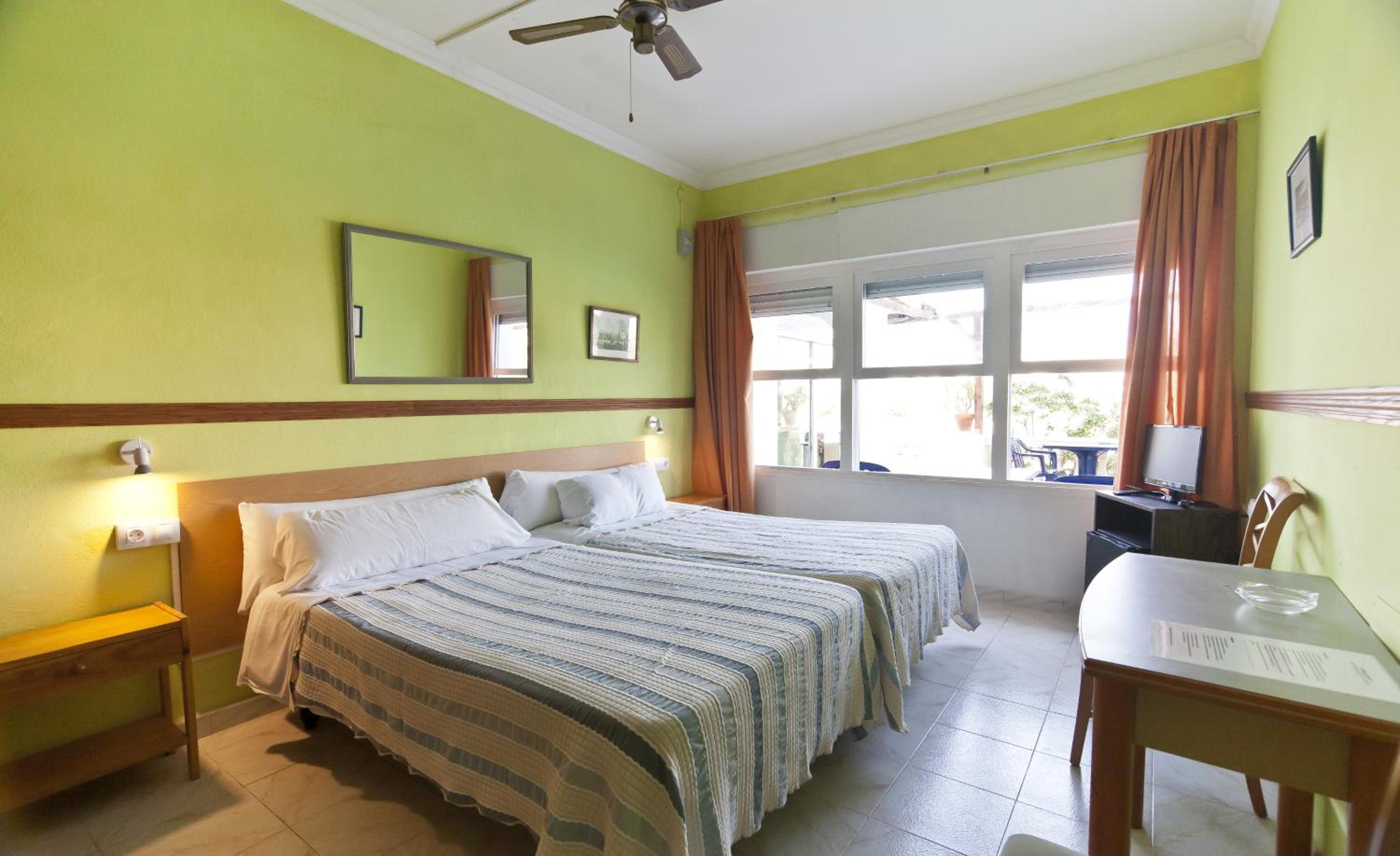 The simple and cozy rooms at Cala Bona y Mar Blava are equipped with all the essentials including a ceiling fan, minibar, and satellite TV. The private bathrooms ensure convenience with provided hairdryers.
