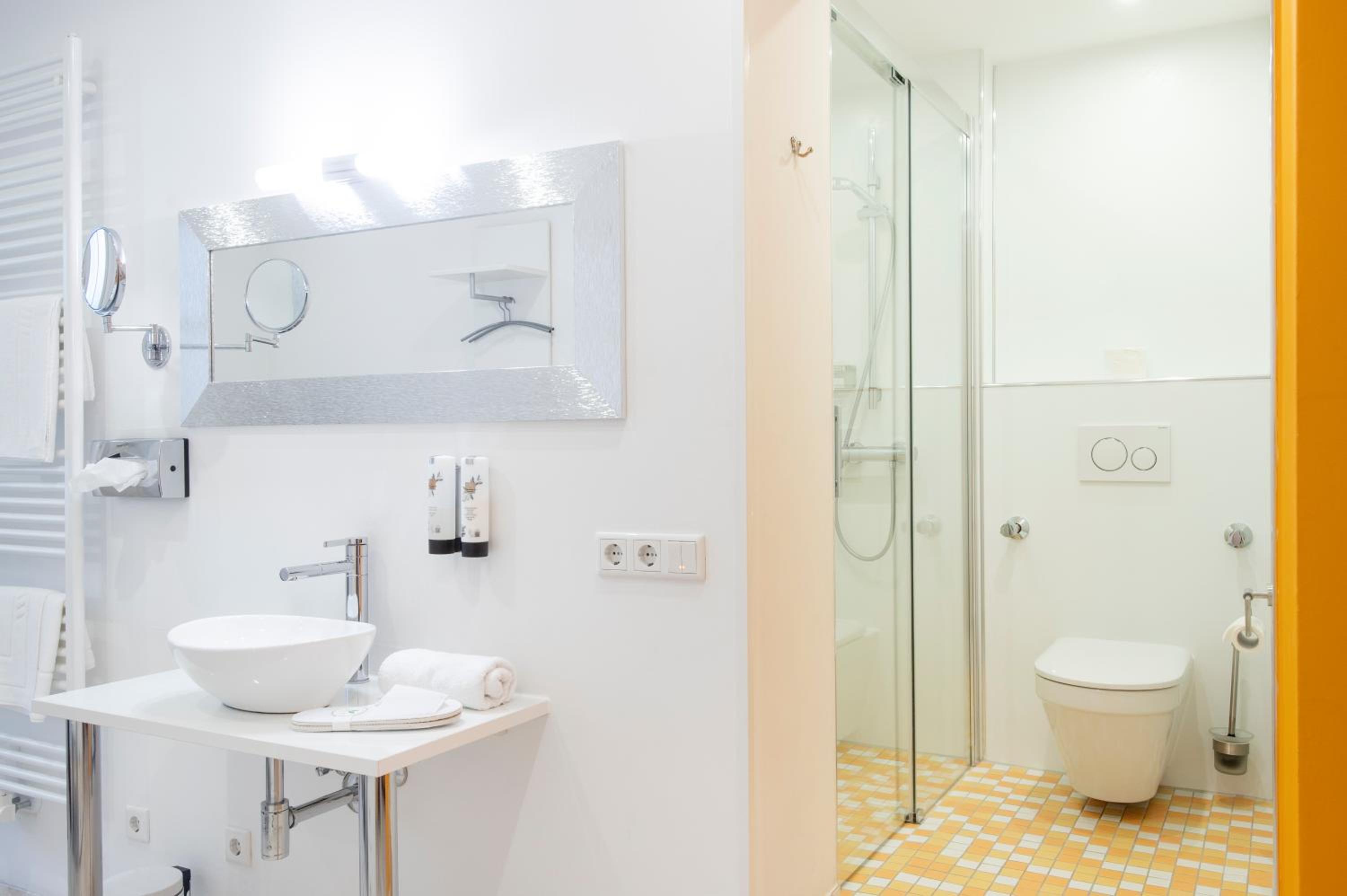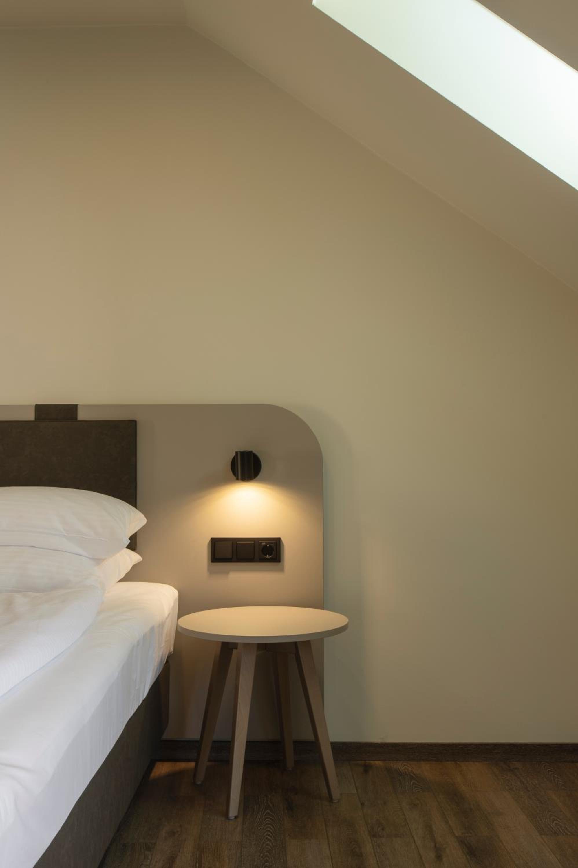 Das Frühstück war etwas anders aufgebaut, kein riesiges Buffett ,sondern in kleinere Bereiche aufgegliedert, z.B. Brote und Brötchen verschiedenster Art, weitere sogenannte gesunde Lebensmittel wie Joghurt, Müsli , Fruchtsäfte usw. waren auf einem weiteren Tisch aufgebaut, Kaffeeautomat war vorhanden, Eierspeisen, Wurst und Käse konnten gesondert bestellt werden (ohne Aufpreis). Ich persönlich finde diese Art von Frühstück umweltbewusster und nachhaltiger, da nicht so viel verschwendet wird. Das Zimmer war sehr geräumig mit einem kleinen Vorraum und einem Bad extra large. Alles war auch extrem sauber. Das Personal war ebenfalls außerordentlich zuvorkommend und freundlich. Sogar ein Parkhaus war in unmittelbarer Nähe (nur über die Straße) und als Hotelgast kann man auch nicht über ein 24-h Stunden-Ticket für 13.-€ meckern. Sehr einladend sah auch das kleine Tapas-Restaurant aus, das angegliedert ist, allerdings war ohne Reservierung kein Platz zu ergattern. Aber nach unserer Rückkehr von der "kleinen Komödie" bekamen wir zumindest noch einen sogenannten Absacker. Sollte uns ein Weg wieder nach Fürth führen, wäre meine erste Anfrage bei diesem Hotel. 👍