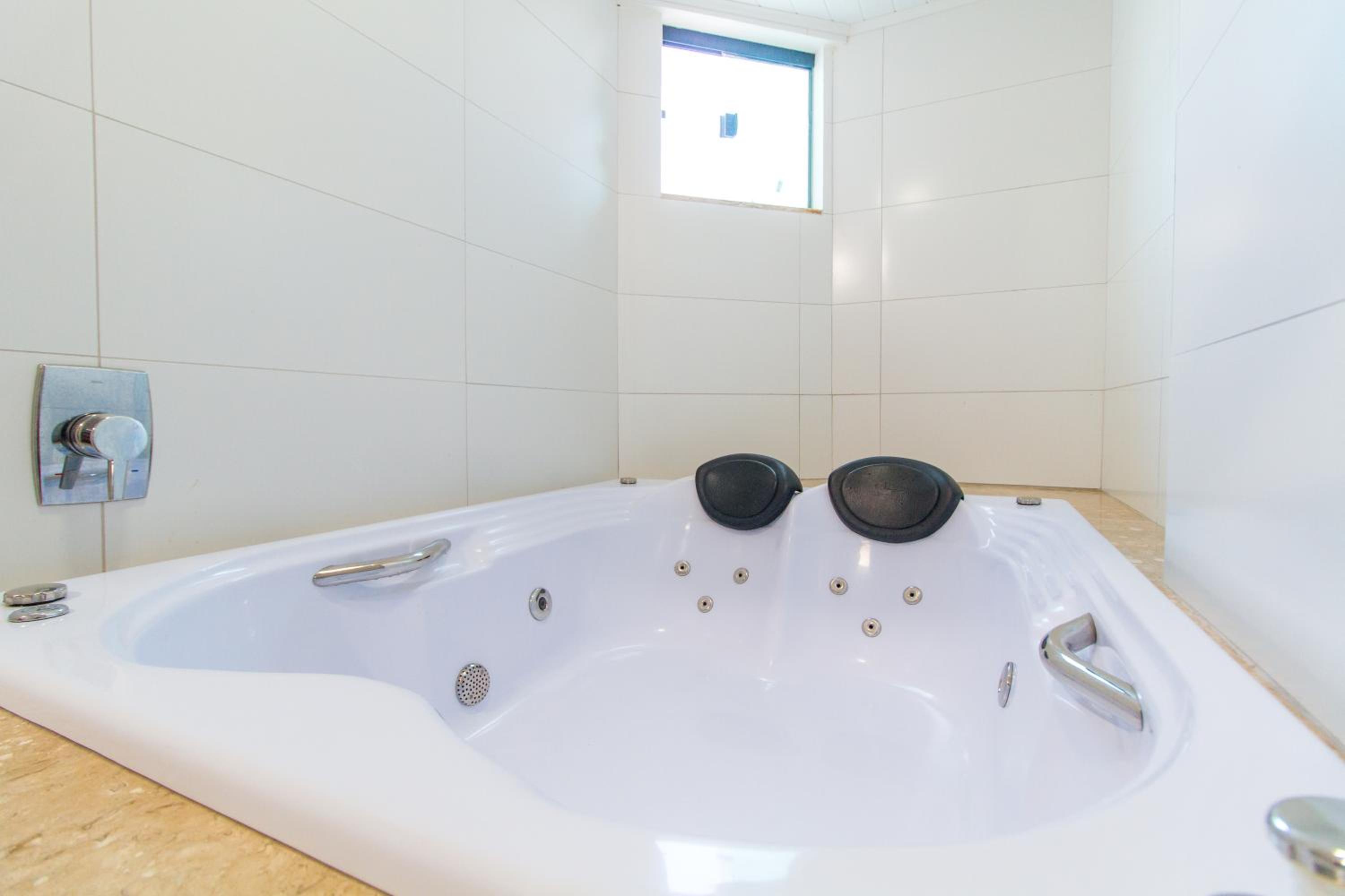 Da cama. Da banheira. Do quarto. Do espaço de lazer.