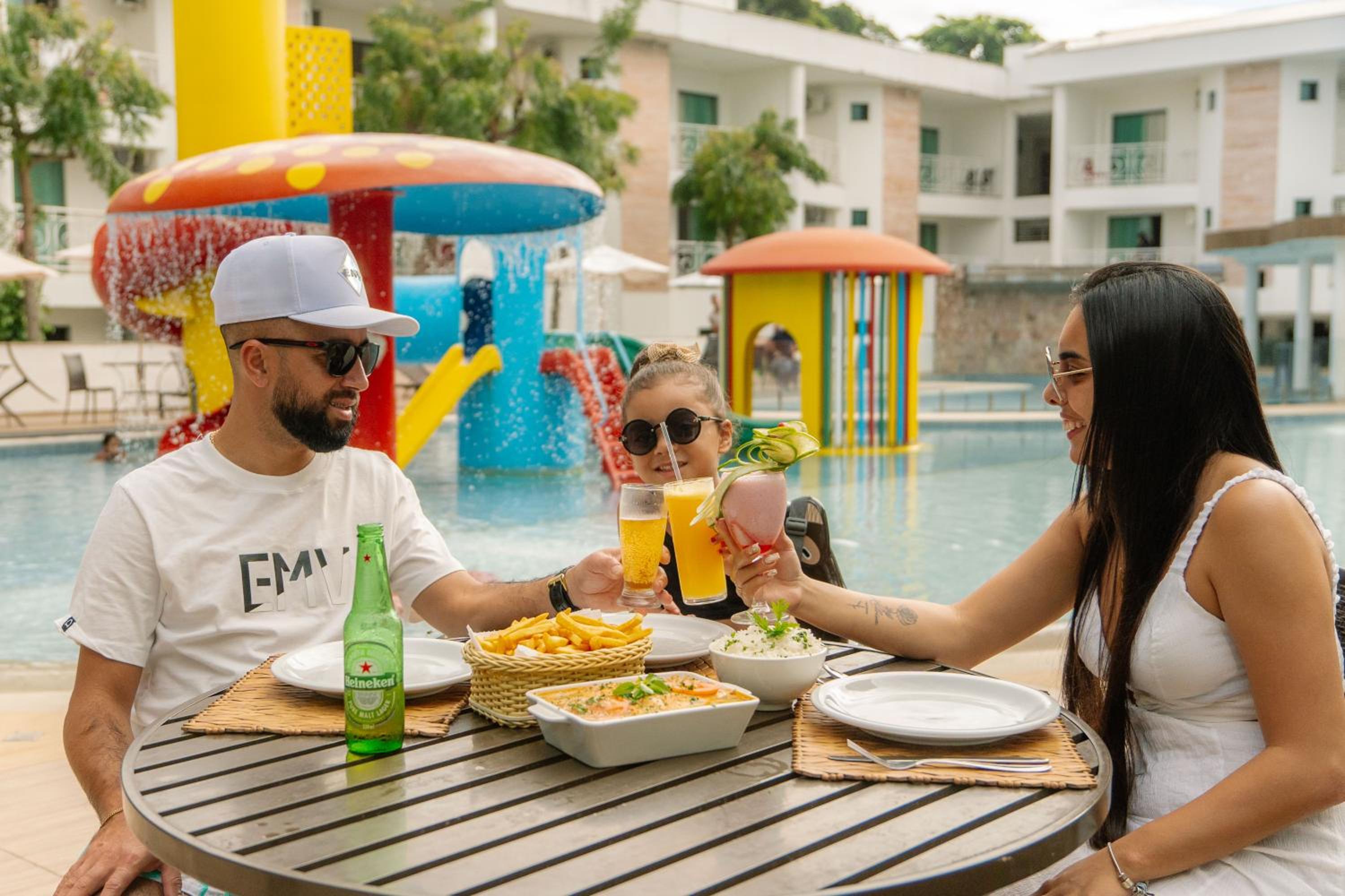 • Lazer: Piscina com temperatura agradável, espaço kids e uma praia versátil, atendendo tanto quem gosta de ondas quanto quem prefere um banho mais calmo.