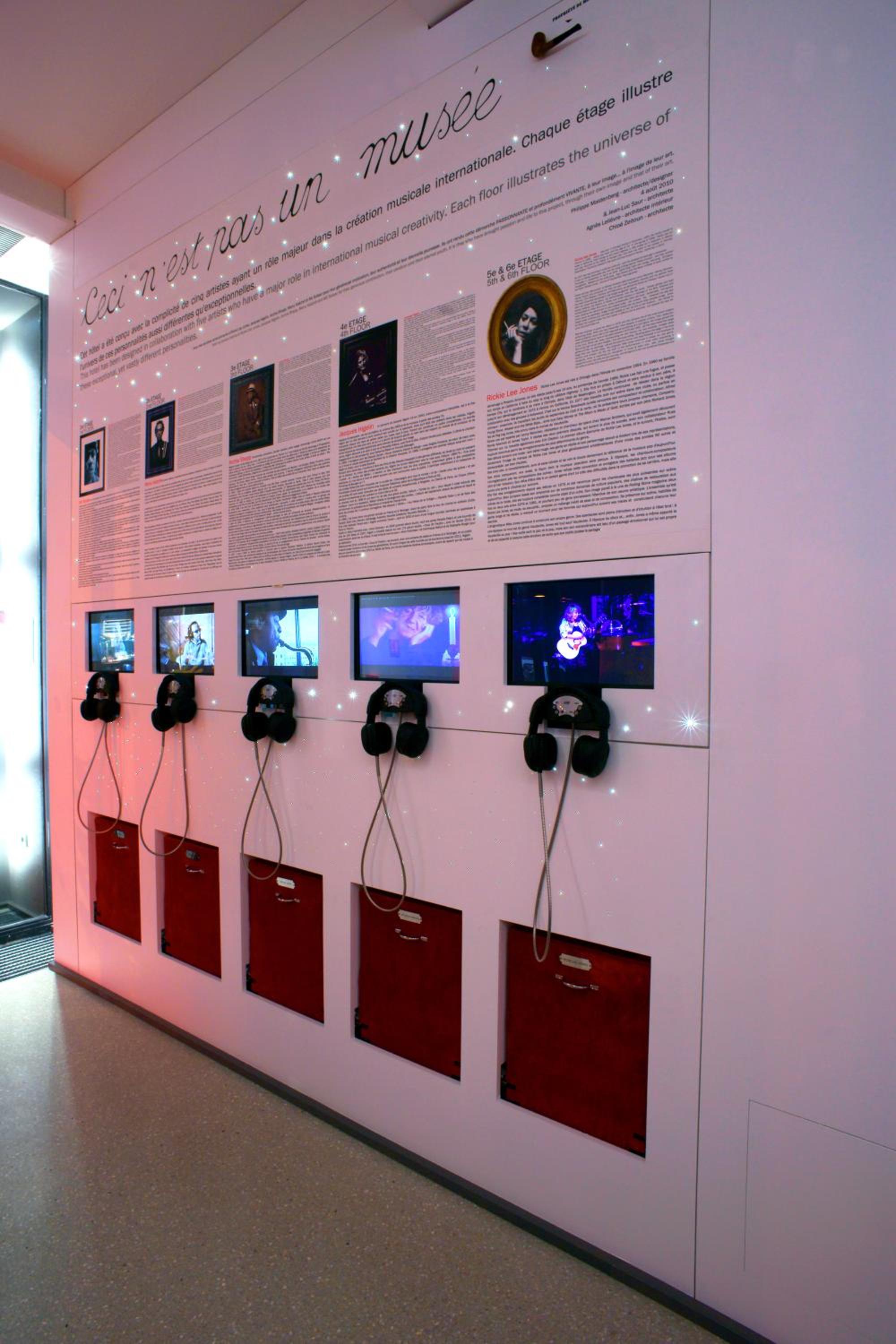 The Hôtel du Triangle d'Or creatively blends art and music, with each floor uniquely designed by renowned musicians like Rickie Lee Jones and Mc Solaar, offering guests a truly exceptional and immersive experience.