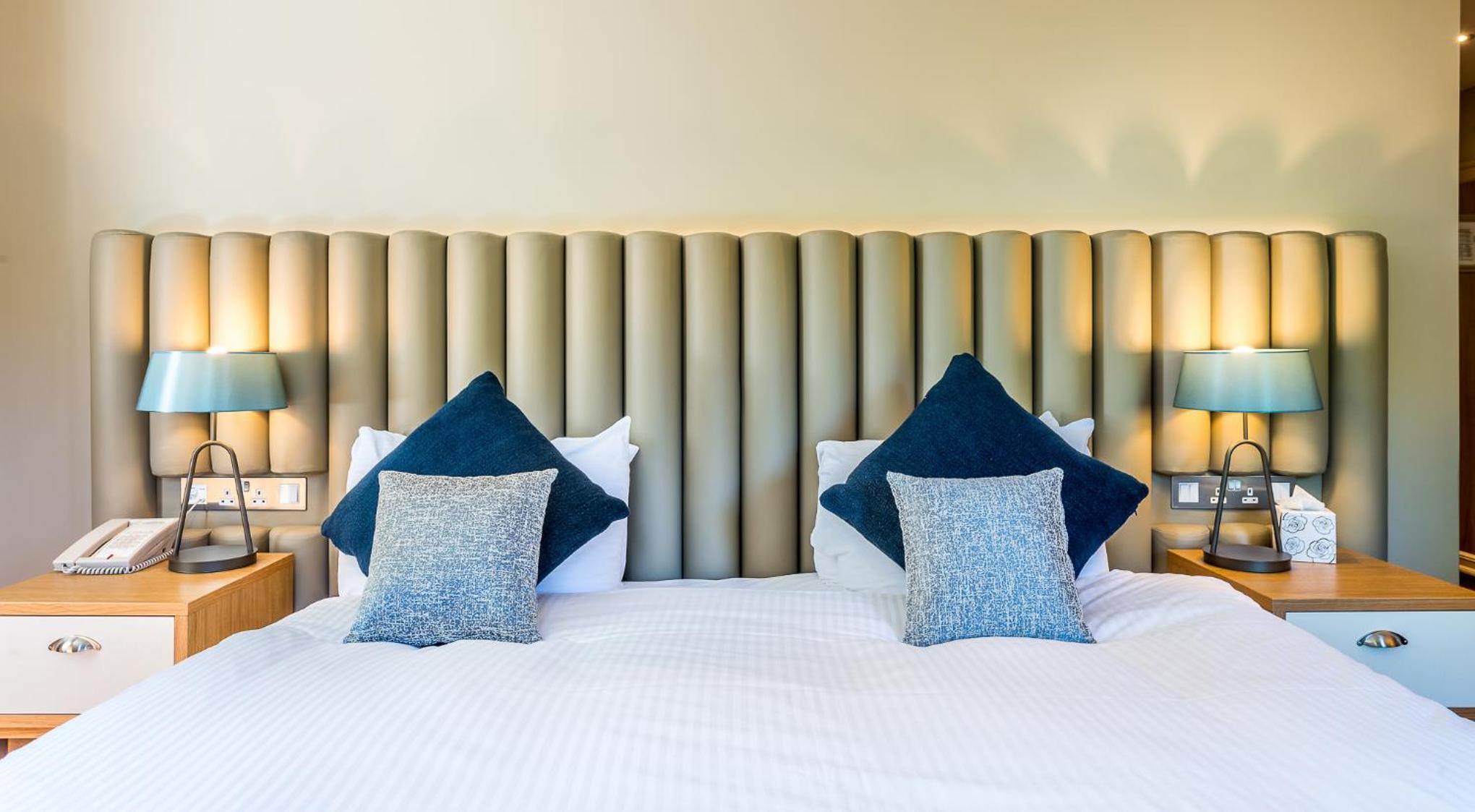 The Scholar offers luxurious bedrooms with large beds, Elite mattresses, and quality linen for the best night's sleep. Each room is equipped with a TV, award-winning Novus tea, cafetiere coffee, and a spacious work desk. The bathrooms feature rainfall showers, Arran Aromatics toiletries, and fluffy towels.