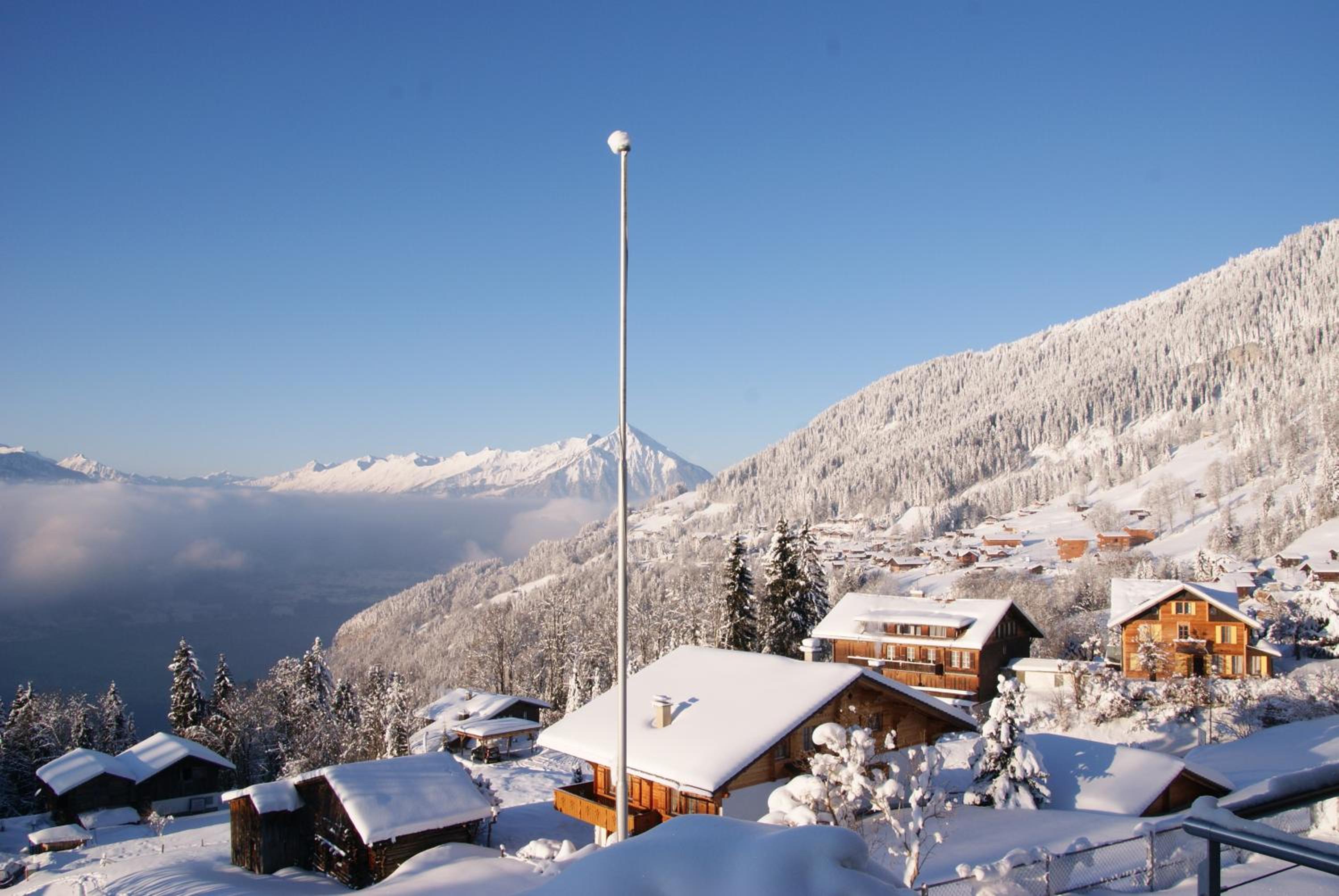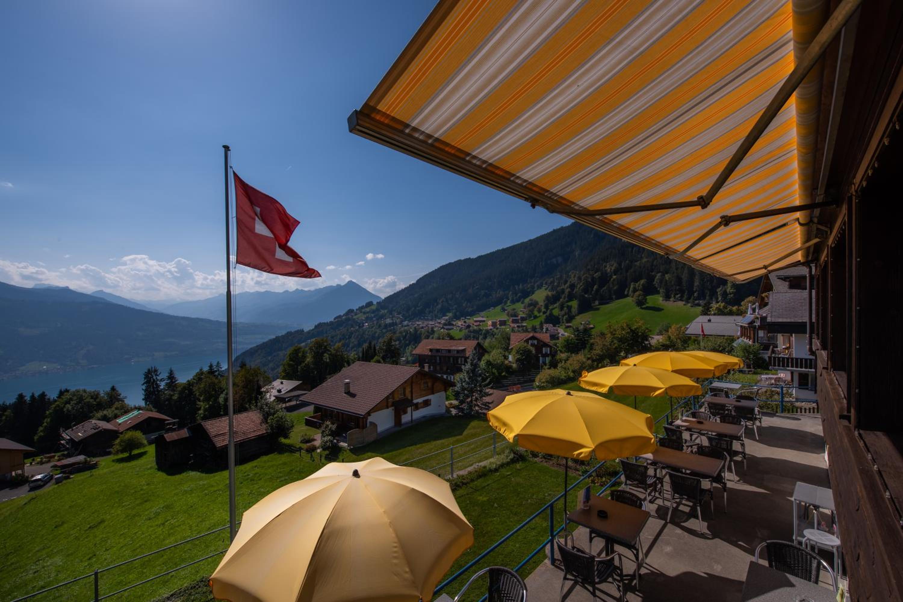 Nestled in Beatenberg high above Lake Thun, the Fassbind hotel offers a picturesque retreat with stunning views of the Eiger, Mönch, and Jungfrau mountains.