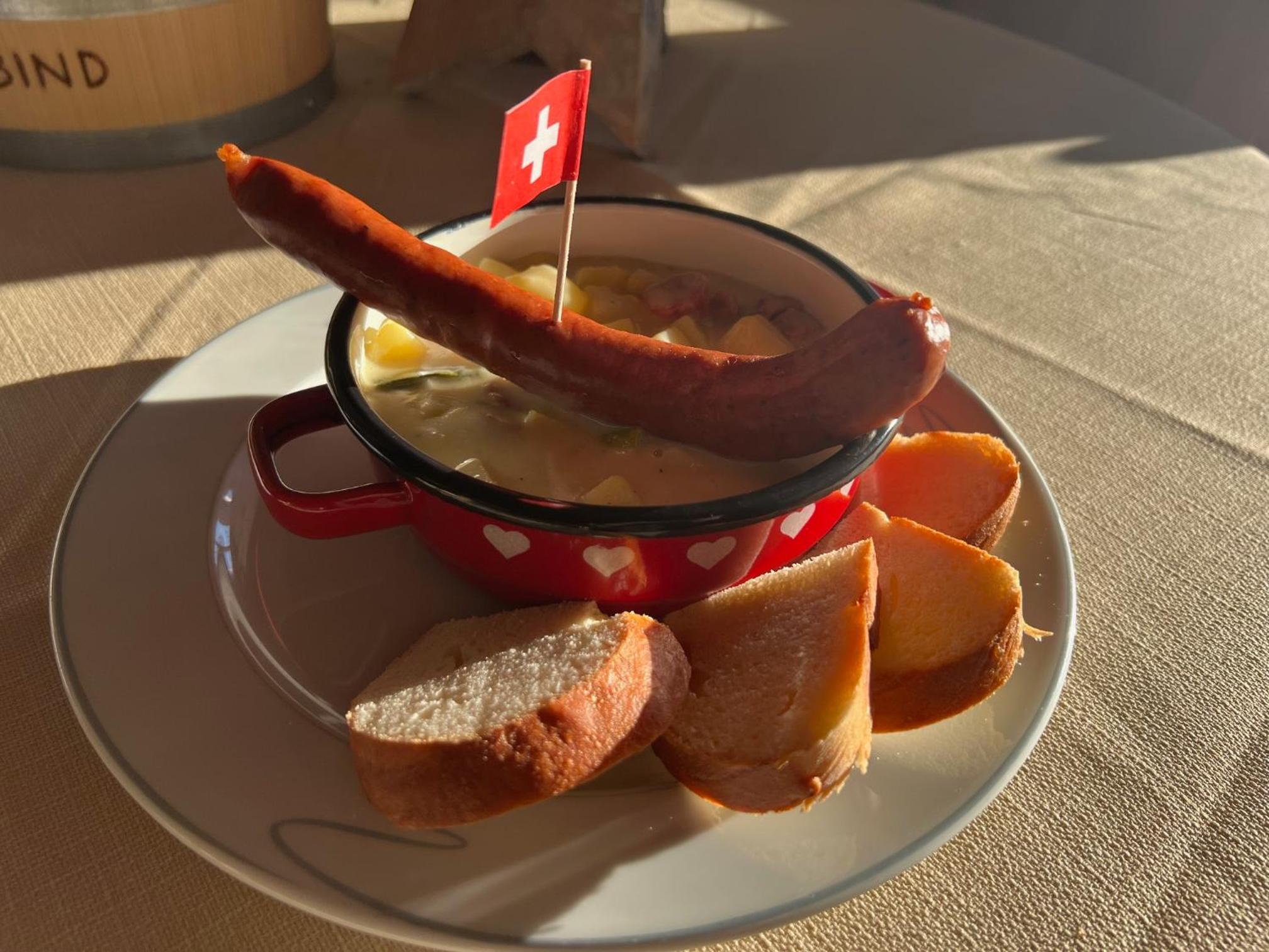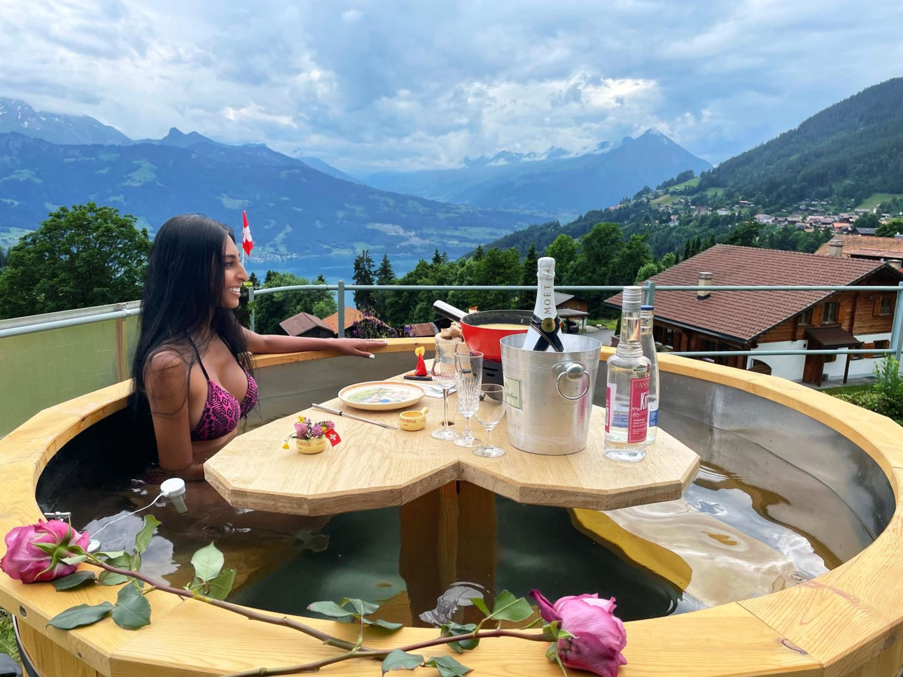 One of the highlights was booking the private hot tub experience while overlooking the majestic Alpine scenery — an unforgettable moment of relaxation and romance. During the evening, we were served a delicious barbecue paired with wonderful wine, followed by a rich and flavorful cheese fondue that was simply outstanding. Everything was prepared with care and tasted incredible.
