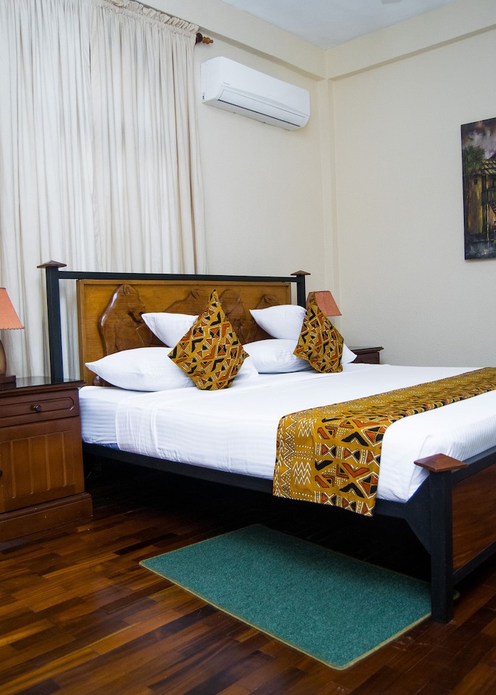 Goede keus voor verblijf in Accra. Goed verzorgd, grote schone kamer met fijne douche, zwembad, behulpzaam en vriendelijk personeel, wifi meestal prima haal en brengservice naar het vliegveld. Wel beetje buiten t centrum maar met de taxi ben je daar zo.