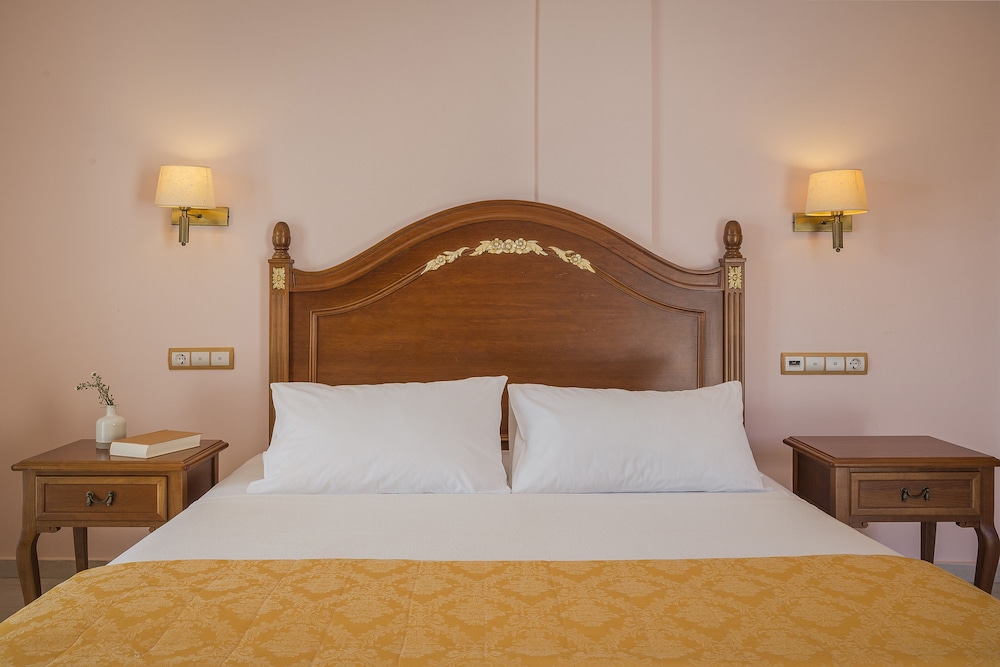 The pool is fantastic. Service at the front desk was excellent. I was surprised that the rest of staff didn’t really speak Greek and the woman working the pool bar hardly knew how to make a frappe. The breakfast was good, though not like my sister remembered from a previous visit. The rooms are dated. Bathrooms/showers need an upgrade. The sensor on our door didn’t really work so it took forever to get in our room. No art on the walls. Tiny TVs. There is parking but it’s a treacherous drive up and don’t bother to book this place if you’re not able to easily go up and down stairs. Thank goodness we’re capable but I worry about older people who may not be. I’d probably try staying somewhere else next time.