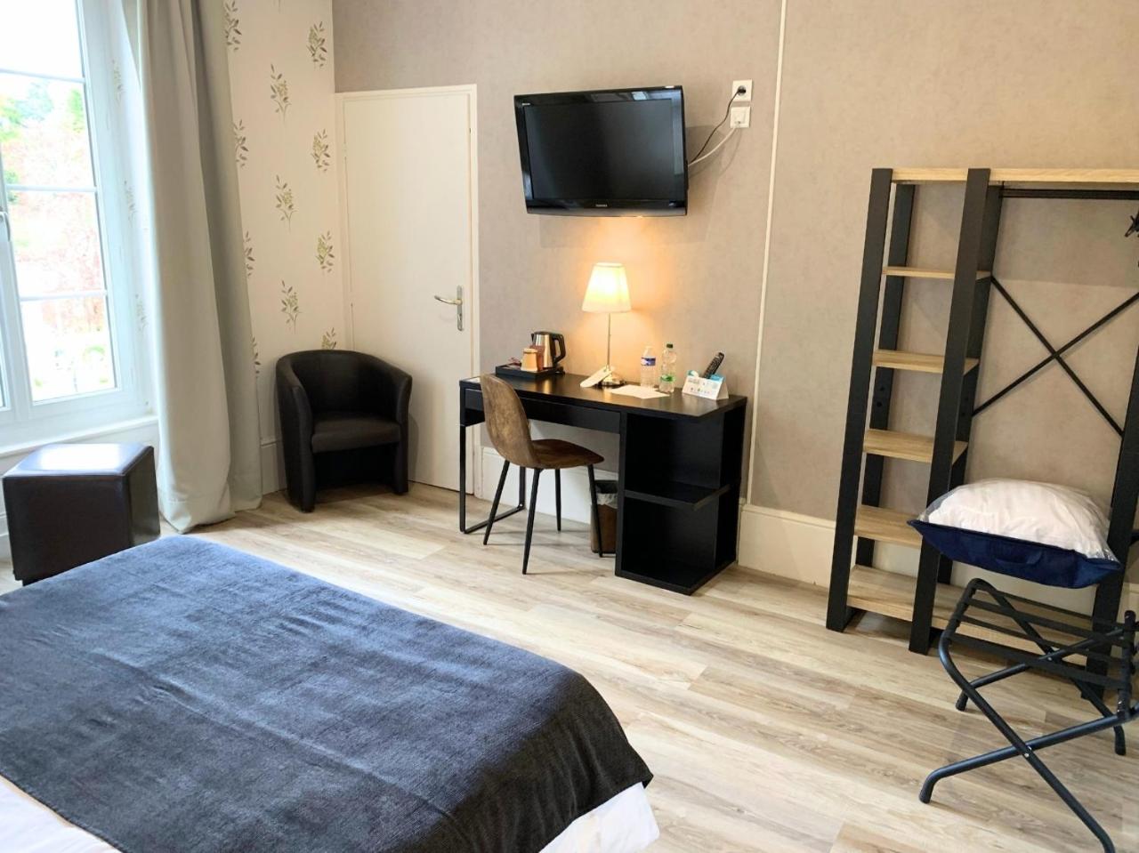 Chambre contemporaine avec haut plafond, un lit confortable (mais vraiment très bas), du rangement et 2 bouteilles d'accueil. L'endroit est calme, avec un parking gratuit, des volets roulants bien occultant et un bon wifi. La salle de bain est vraiment très petite (mais fonctionnelle) et sa seule prise est mal placée et ne fonctionne pas. Il n'y a pas de clim, l'insonorisation n'est pas géniale (on entend même la télé de la chambre voisine) et l'ascenseur minuscule. Dommage de devoir sortir de l'hôtel pour aller au spa et qu'il n'y ai pas de frigo dans la chambre.