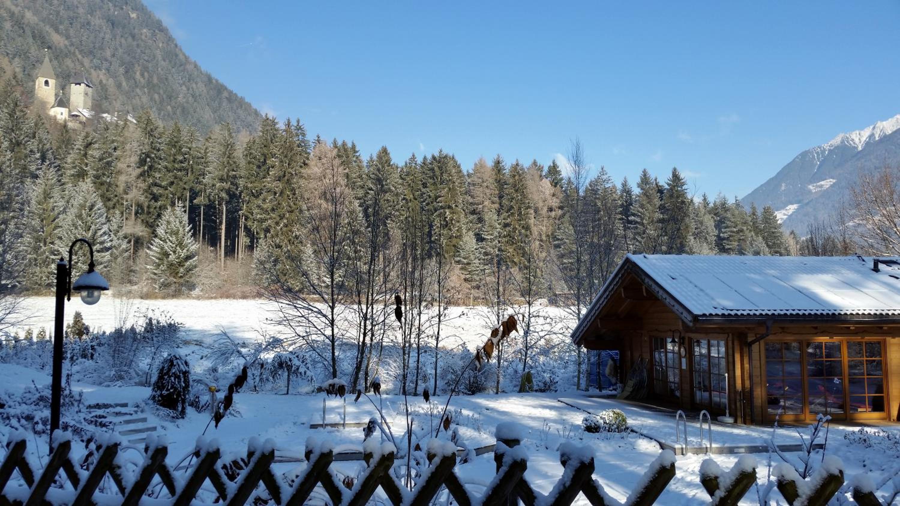 Indulge in ultimate relaxation at Hotel Burgfrieden's expansive garden with a sauna cabin, perfect for unwinding after a day of exploring Val Pusteria. Guests can also enjoy the rejuvenating swimming pool and traditional steam bath, ensuring a tranquil stay.