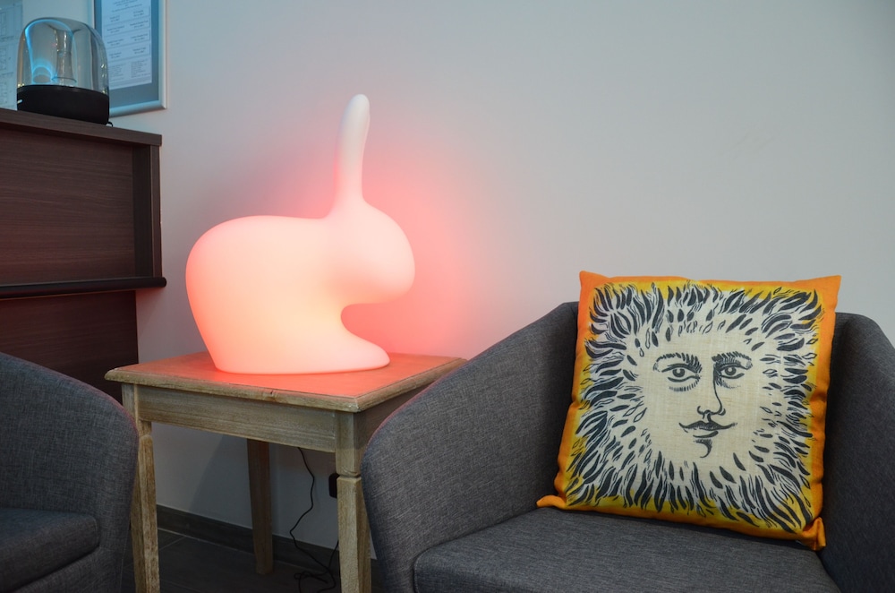 Receptionist spocchioso,info non corrispondenti a quello prenotato.Copripiumone sporco di sangue e presenza di peli sul materasso.Camera in struttura esterna e " corte " i tesa come divisorio tra palazzi e deposito.Scale e condizionatori ( per me una corte la intendo con un piccolo giardino o per lo meno uno spazio diverso da quello esistente).