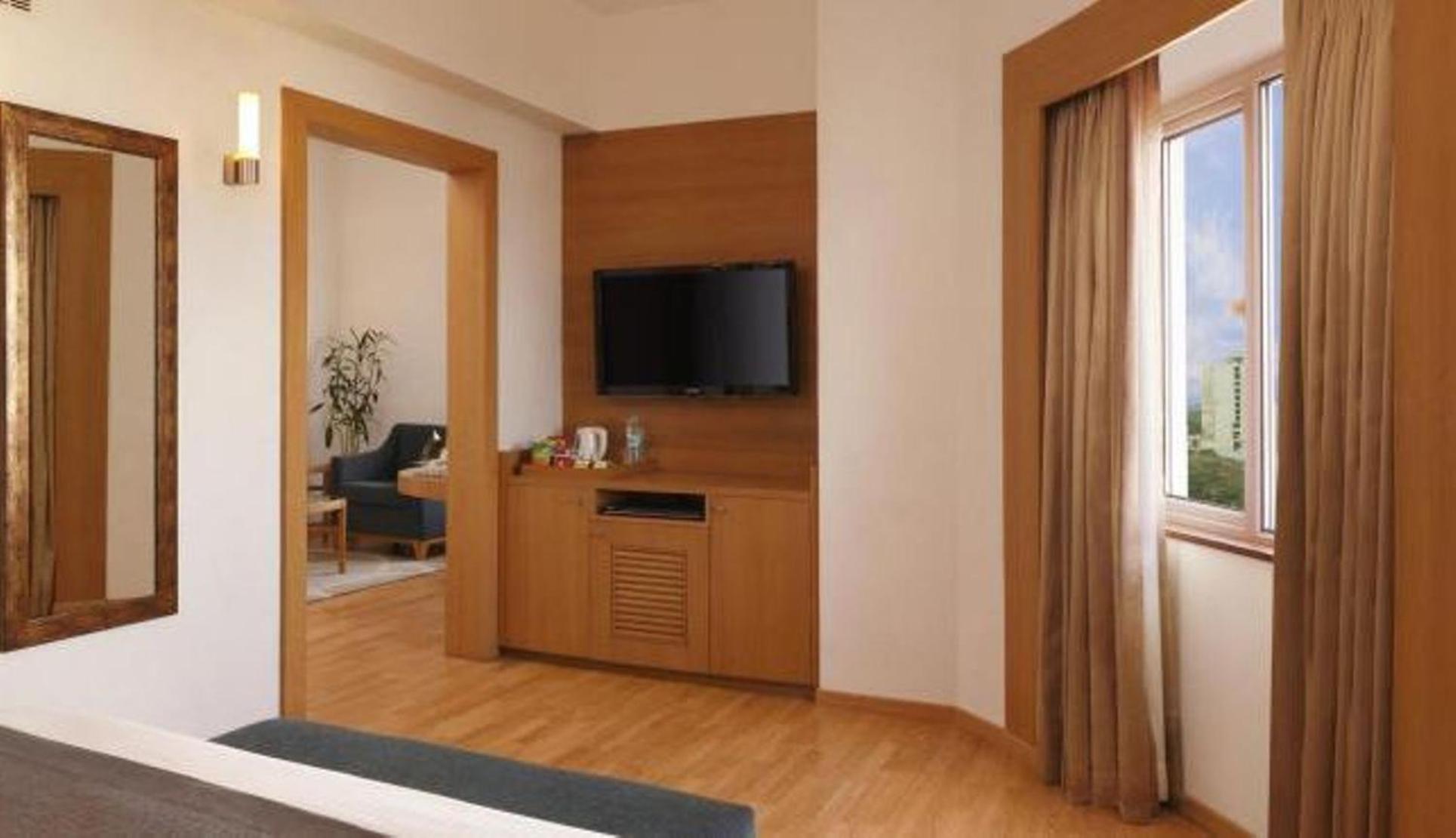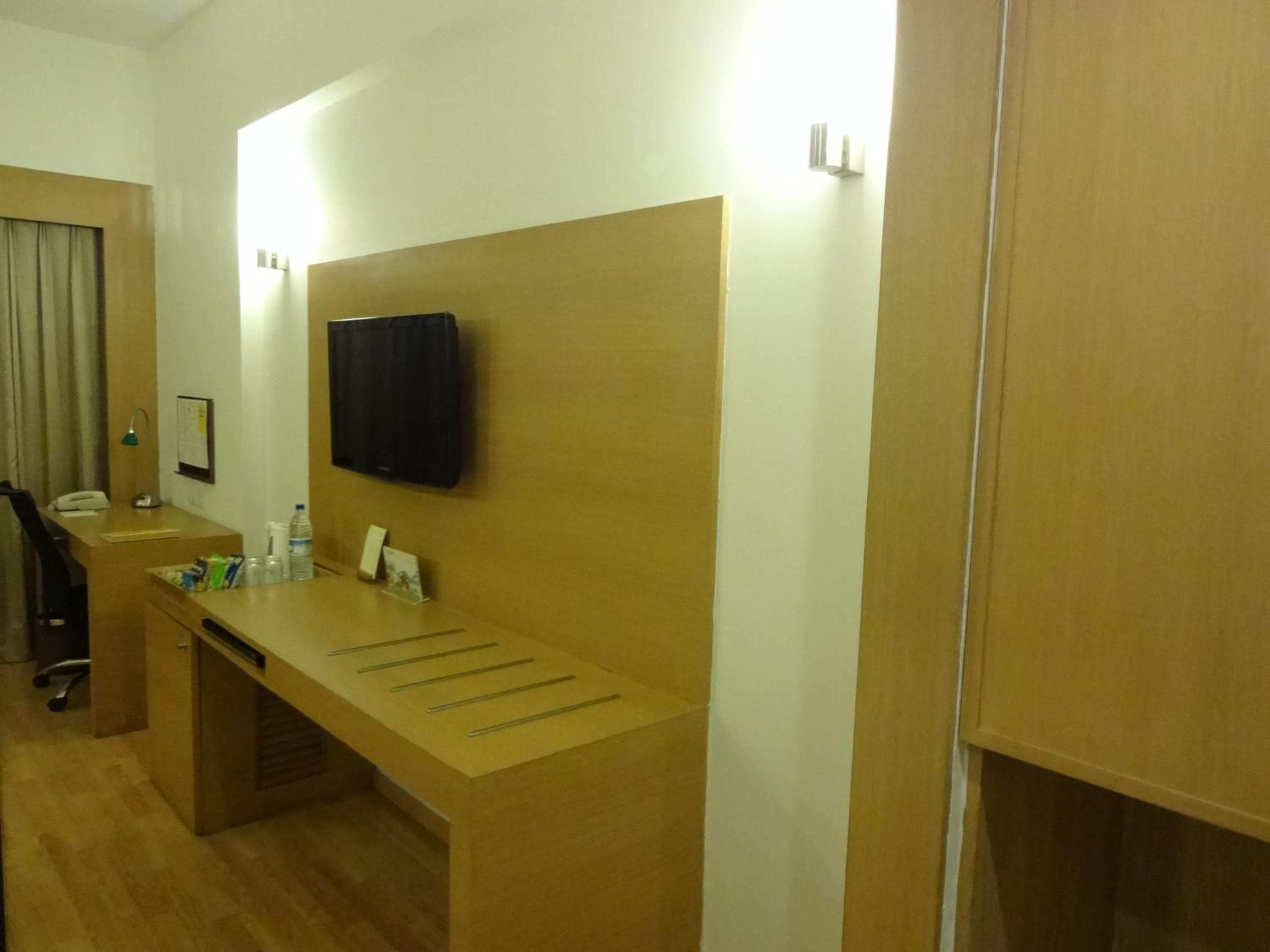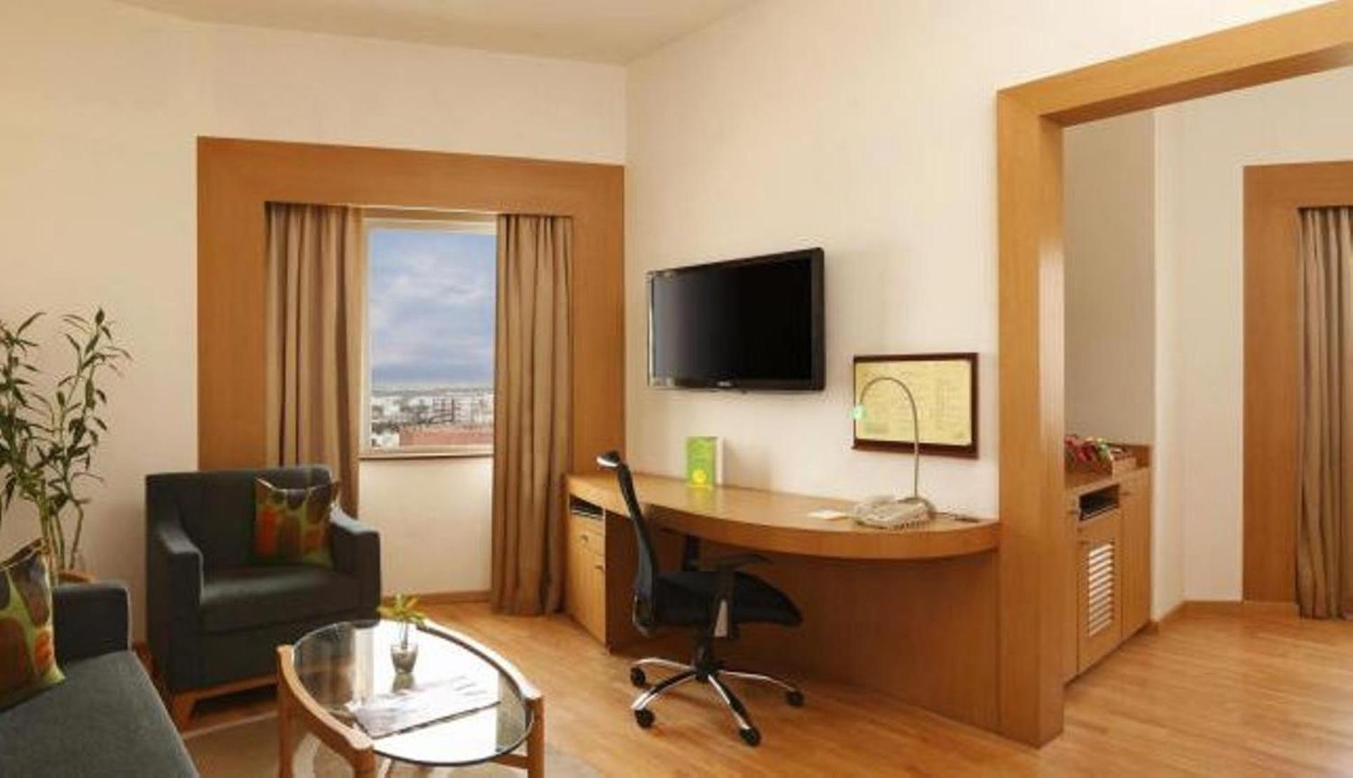 The Lemon Tree Hotel in Hitec City, Hyderabad, offers elegantly designed rooms equipped with a DVD player and flat-screen TV for your entertainment needs. The refreshing décor and modern amenities including a tea/coffee maker and minibar ensure a comfortable stay.