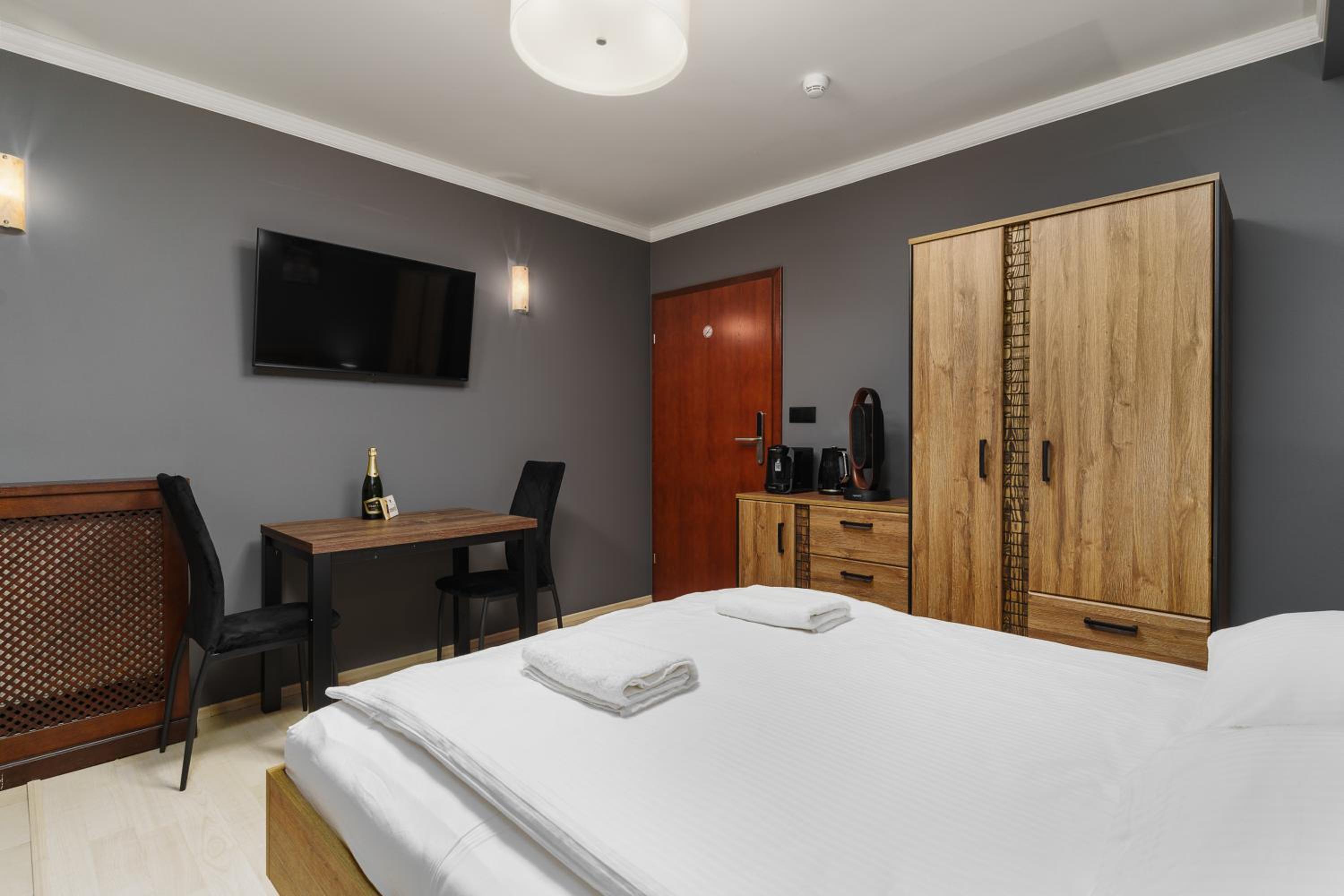 Pokój mały ale przytulny. Dosyć duża łazienka. Lodówka w pokoju dużym atutem. Dobry dojazd do Dworca Kolejowego.