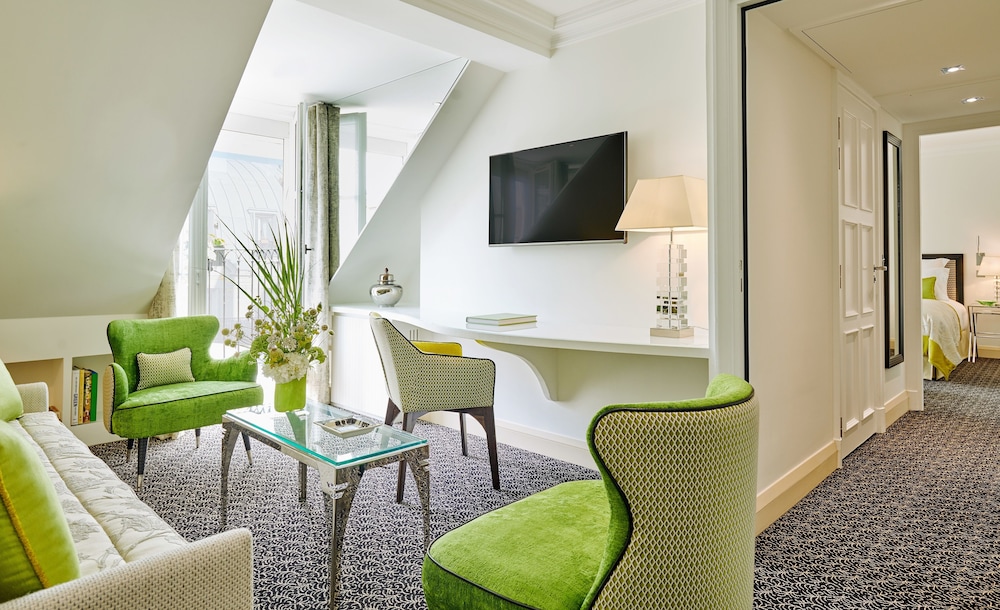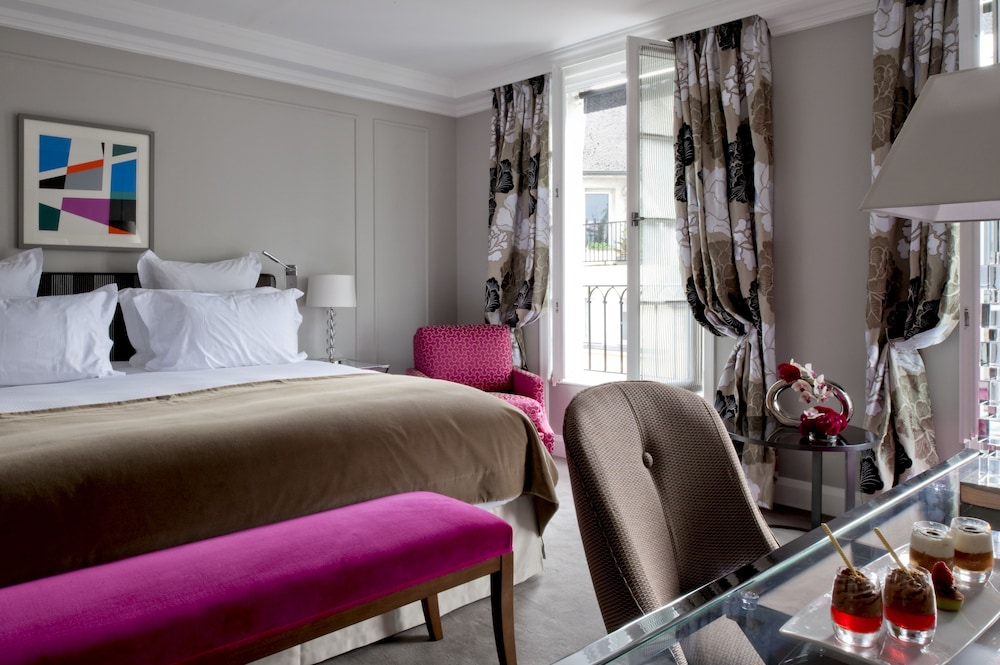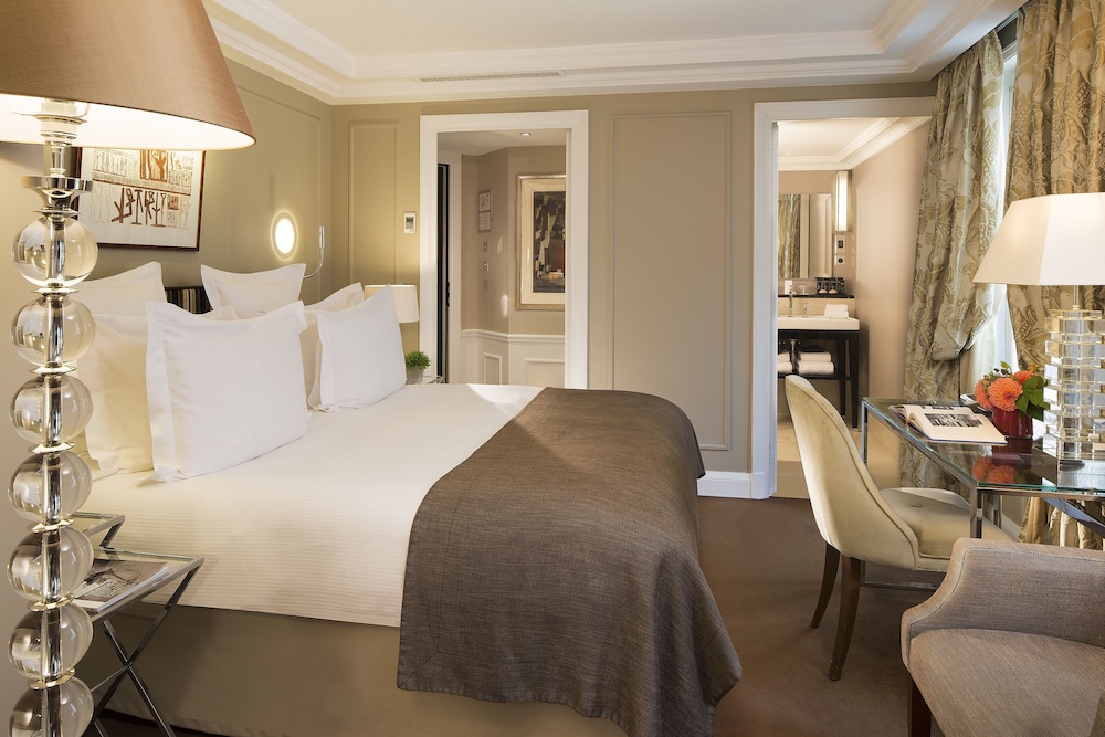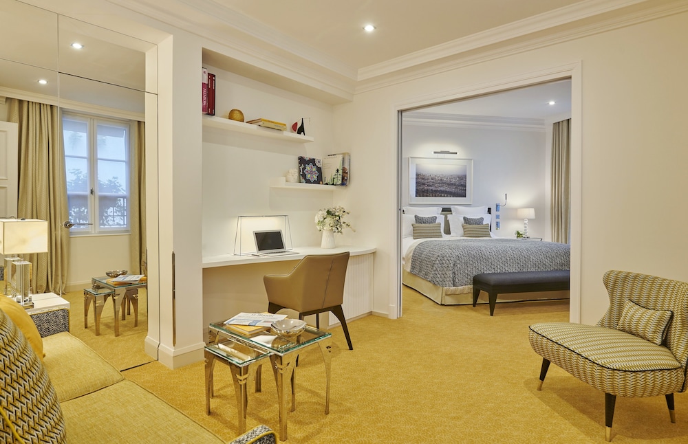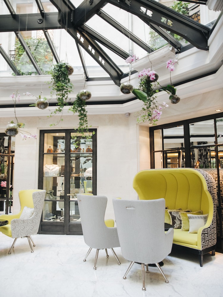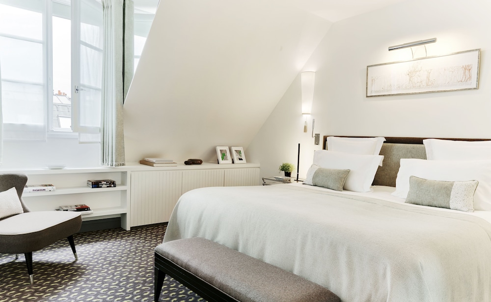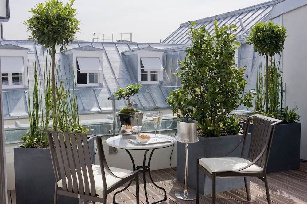 Centrally located near Place Vendôme and Champs-Élysées, this luxury hotel offers 59 guest rooms with modern amenities including tablet computers and minibars.