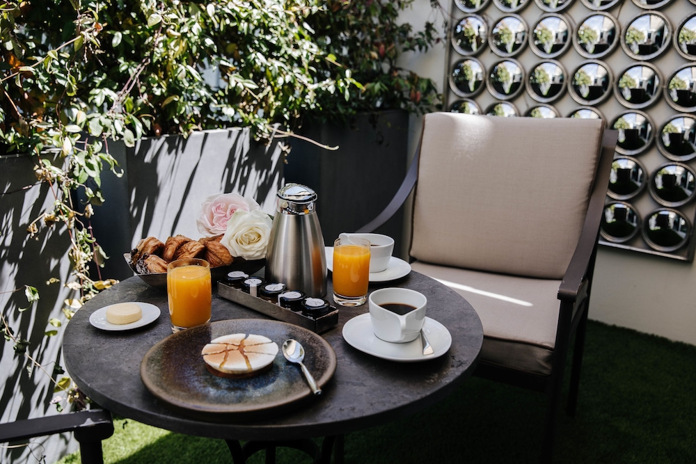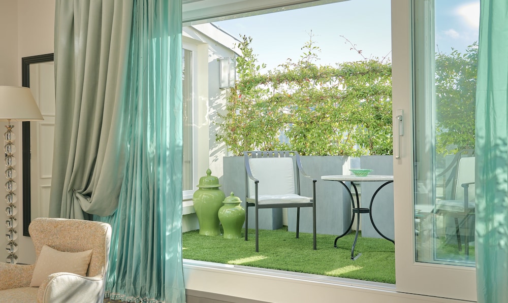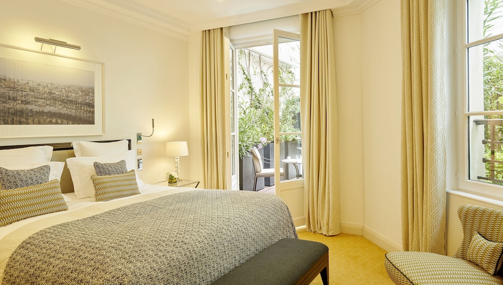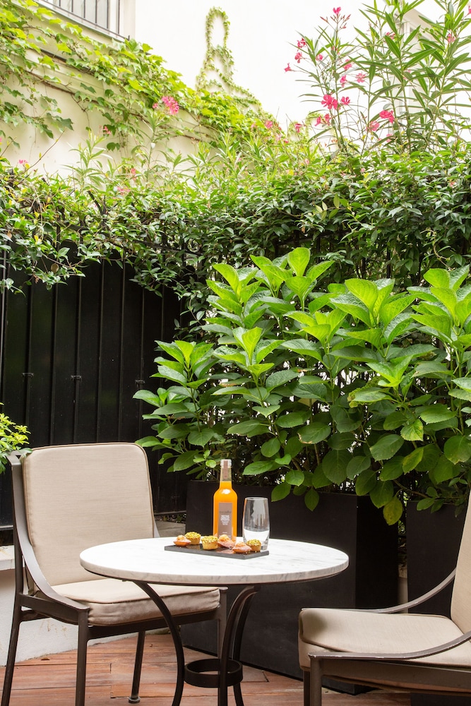 The room we stayed in was room 108, one of the two rooms with a garden walk out. This space absolutely made our stay in Paris as we were able to enjoy a spacious and quiet space to ourselves when we were tired of the hustle and bustle of the city. It even featured a retractable awning that enclosed the majority of the space giving us privacy from the overlooking rooms. The bed was incredibly comfortable with high end sheets and pillows. The location felt private, located on a quiet side street while still being within a block of all of the high end shopping as well as several great cafes. Lastly, the bar area and lounge offered elevated dining and cocktail experiences in a quaint but high end setting. We felt like royalty during our entire stay and I have no regrets about choosing this establishment. We will be back in the future. Thank you to all who made our vacation one of the most memorable to date.