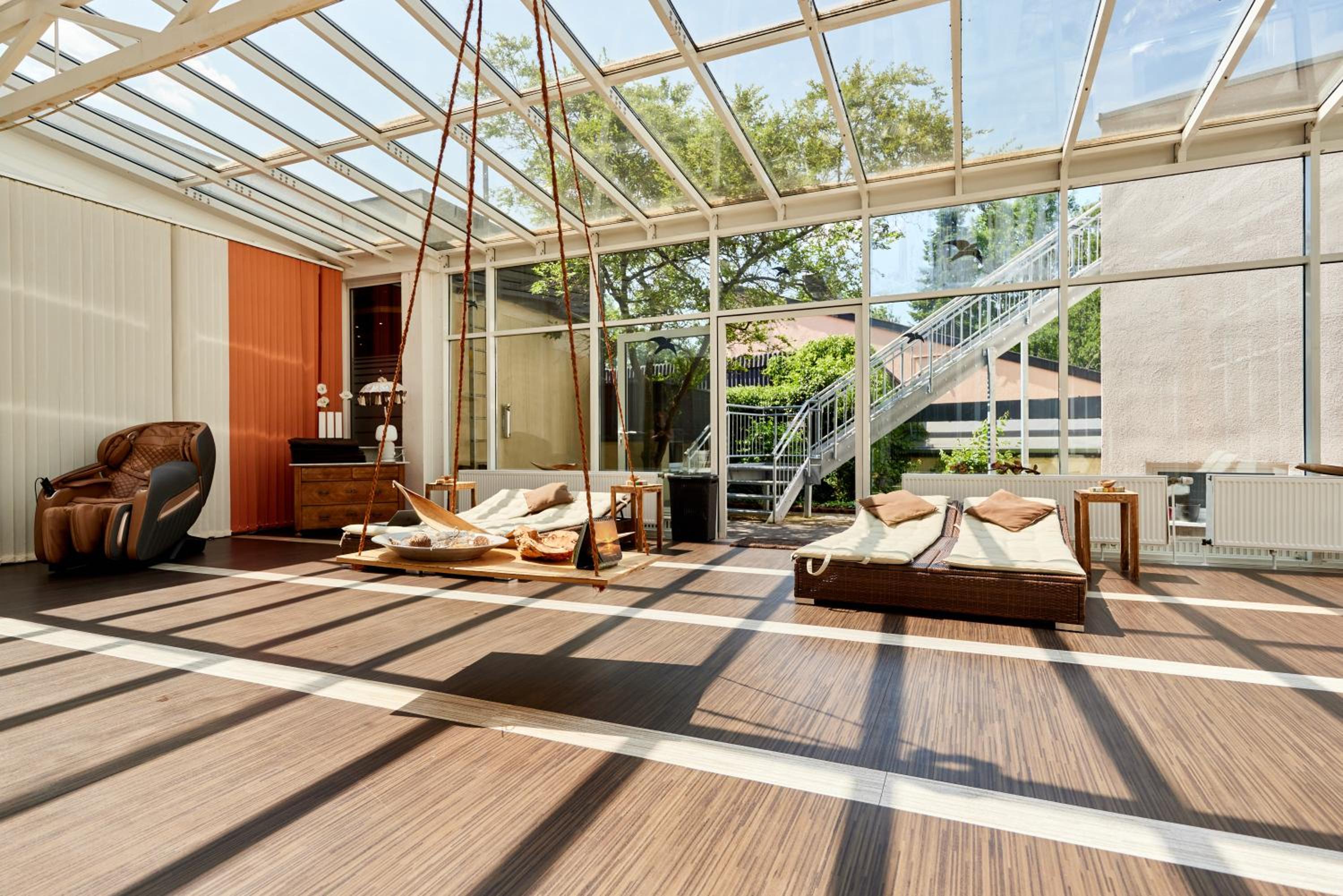 Unwind in the indoor swimming pool, sauna, or enjoy a game of indoor football. Explore the abundance of hiking and cycling trails in the surrounding area for outdoor enthusiasts.