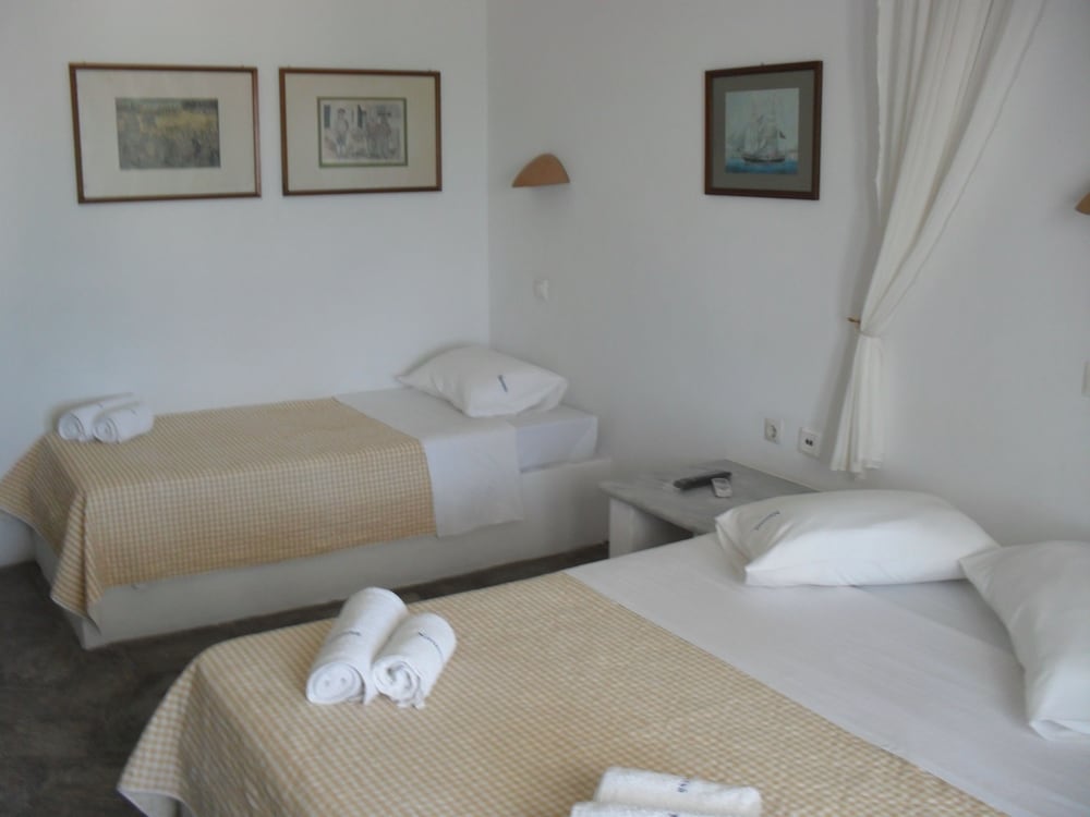 The staff was really nice and friendly. The room was clean and spacious. The only thing that I would suggest is that you upgrade the beds and pillows. They are literally on their last leg. Also, supply pool towels included in the fee. Make the breakfast fee very clear. Other than that the location is good. Market near by a great beach on the way to chora. Overall good stay.