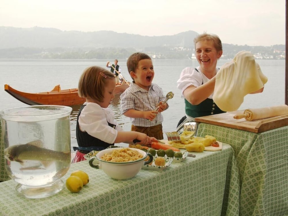 Ruhiges, jedoch sehr zentral gelegenes Landhotel am Traunsee. Sehr aufmerksames, freundliches Personal und eine engagierte Eigentümer-Familie. Perfekt sind auch der eigene Badestrand und Parkplatz am Hotel. Der neu errichtete Wintergarten und die tolle Seeterrasse laden ins Restaurant ein. Das Familienzimmer ist großzügig gestaltet.