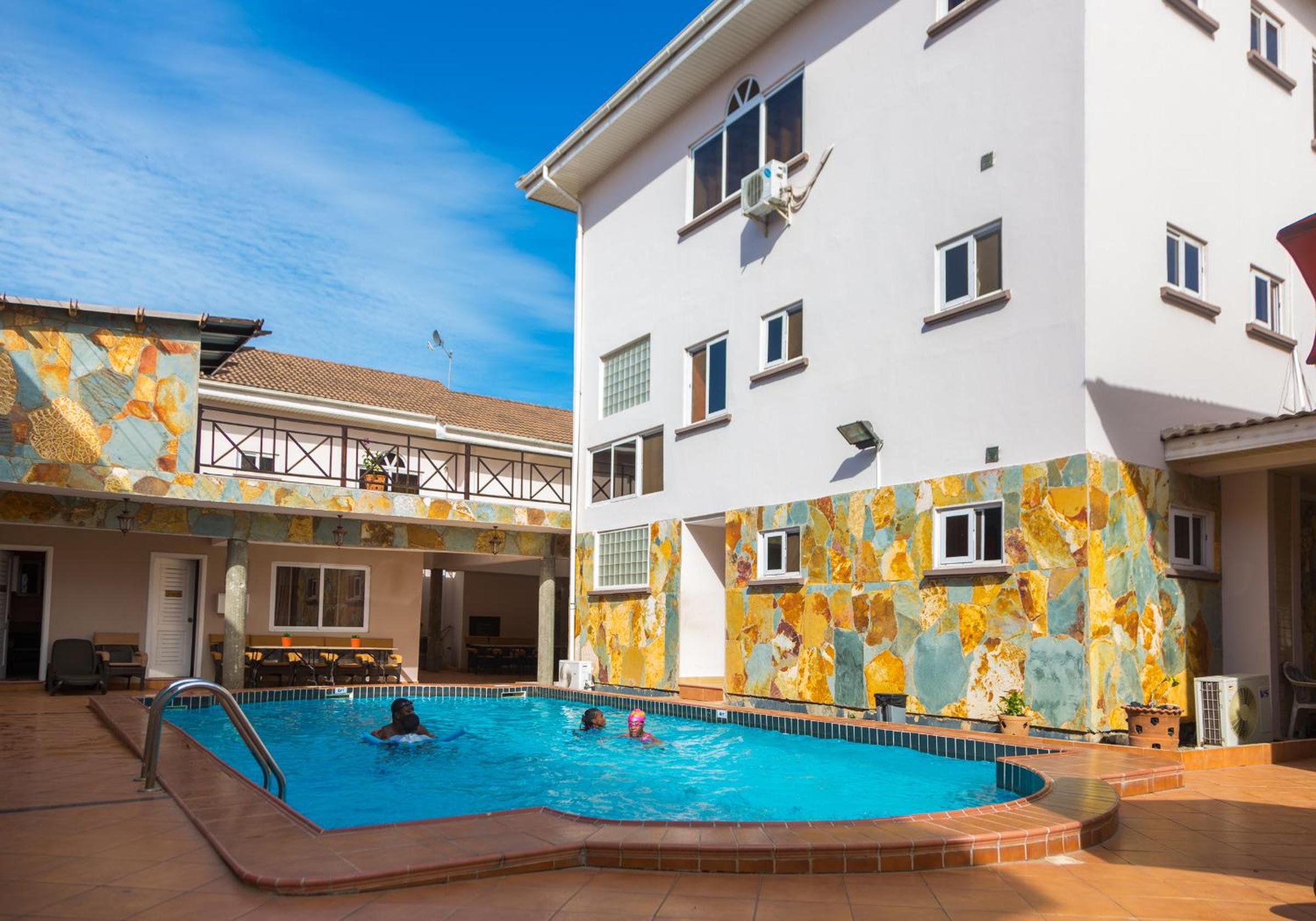 L'albergo è davvero bello, pulito e accogliente, in una ottima posizione vicino all'aereoporto, ai mall di Accra e a diversi locali.
