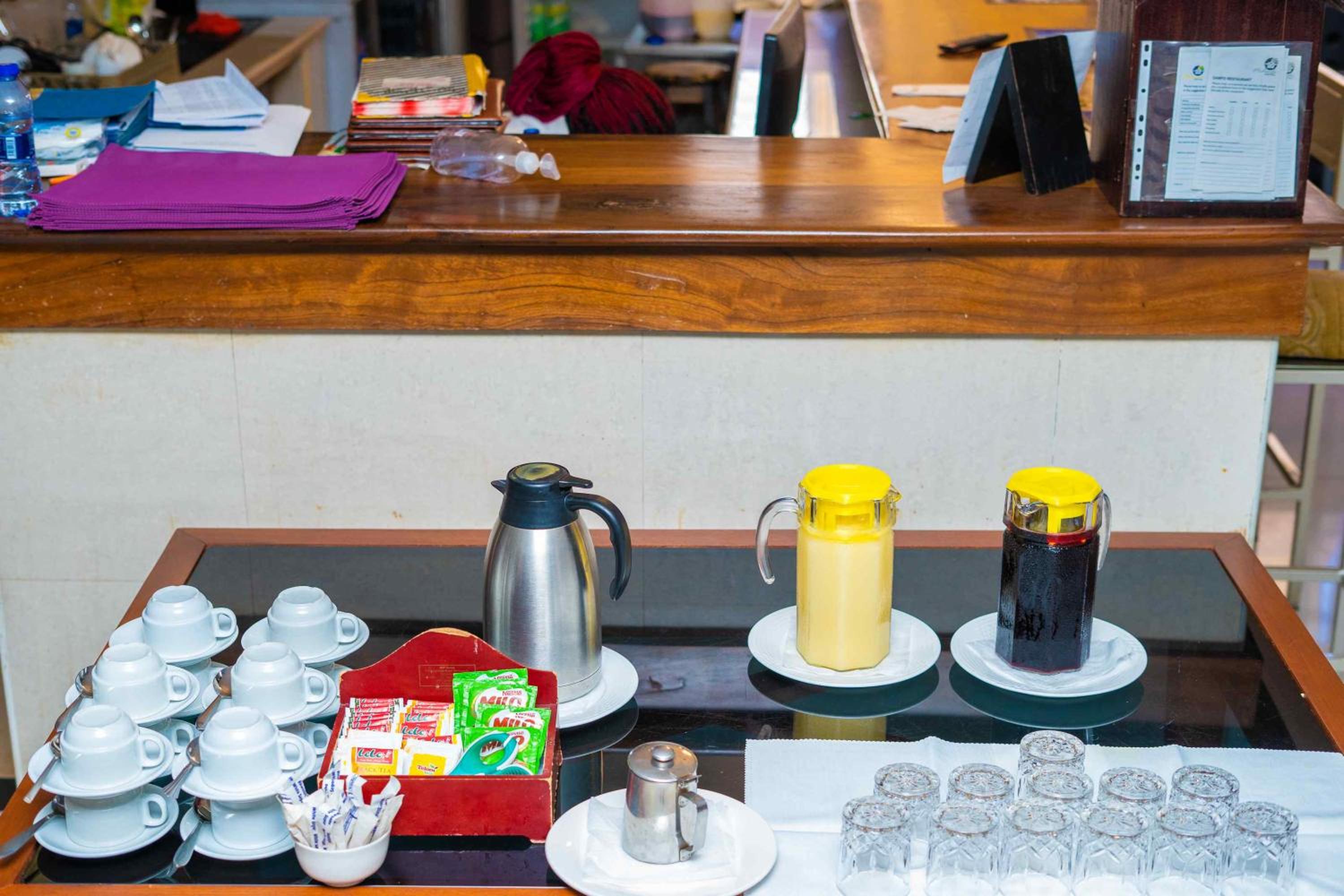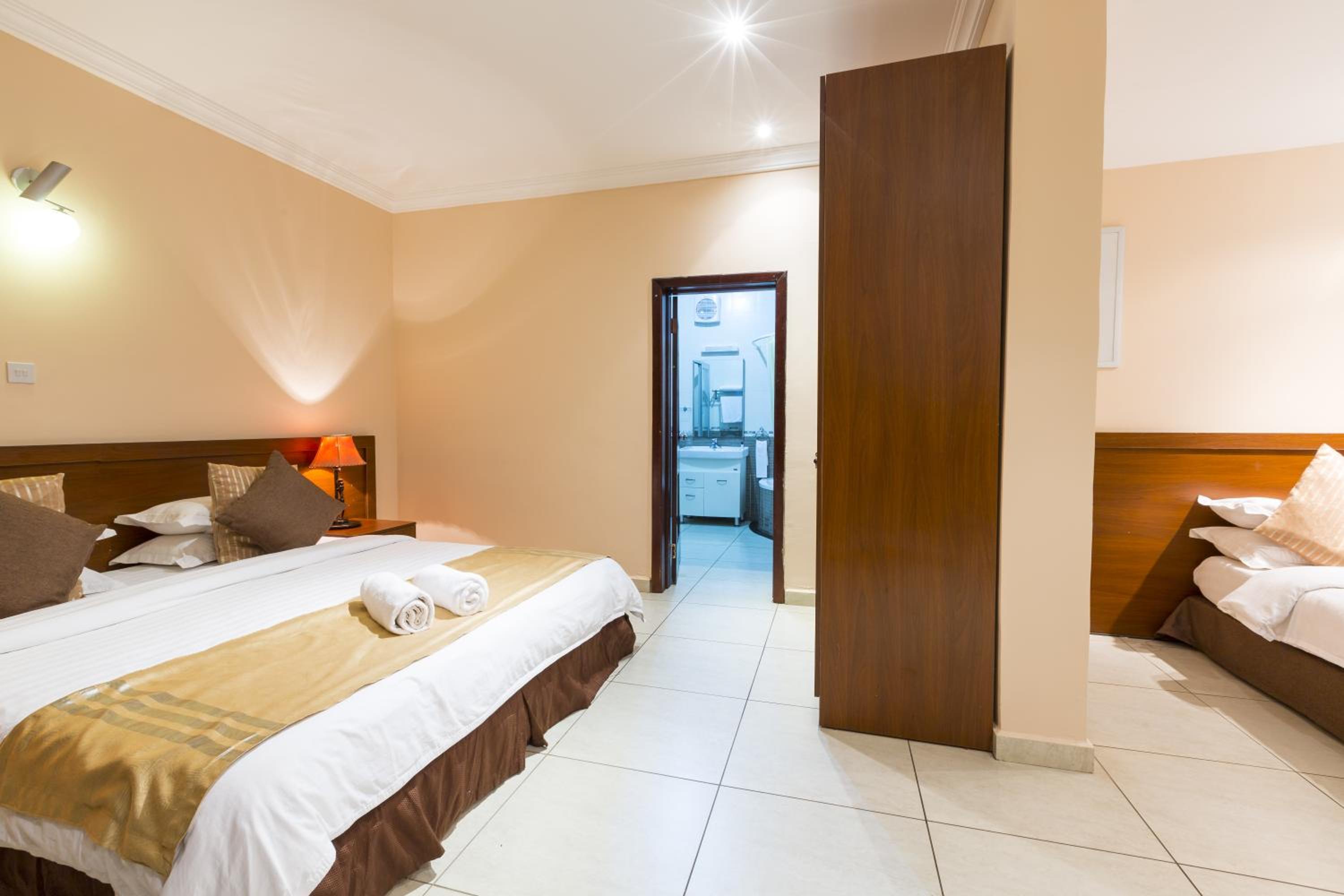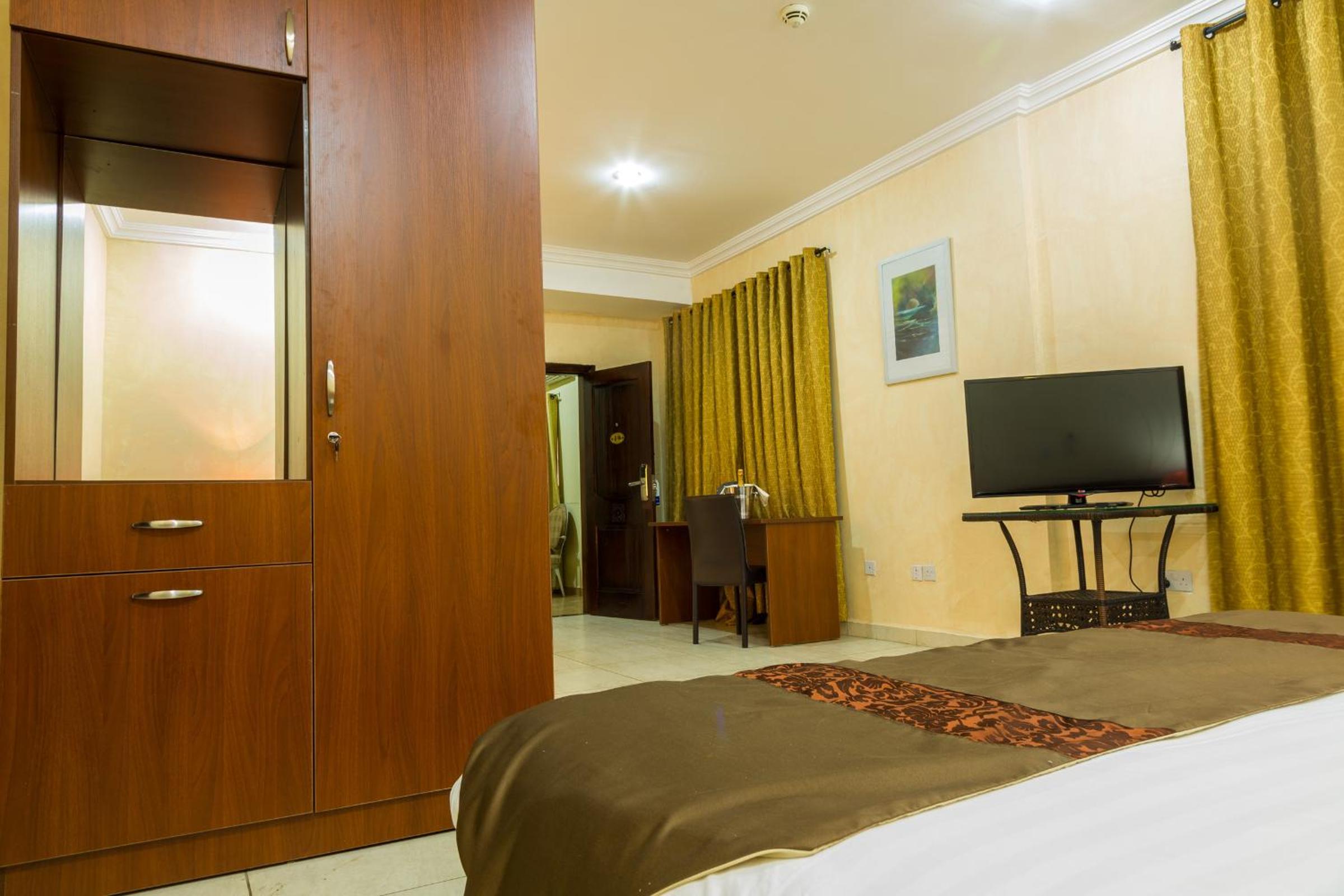 Optimum service and communication with safe hotel pick up; good free breakfast and restaurant; large bedroom with minimal decor and some wooden African designs in the building with a gym, pool and poolside at a quiet location.