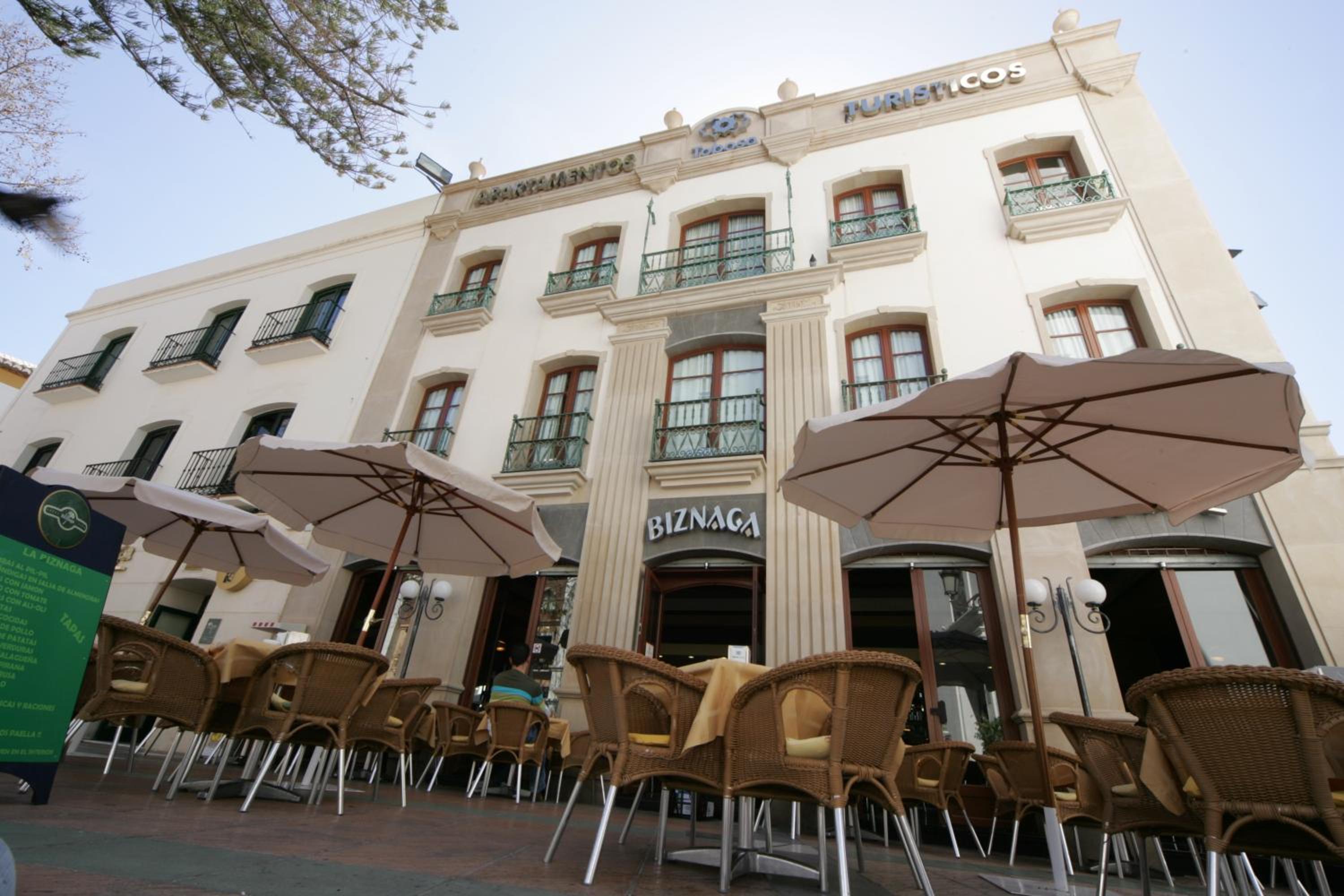 Centrale ligging aan mooi plein vlak bij Balcón Europ. Ontbijt was goed verzorgd.