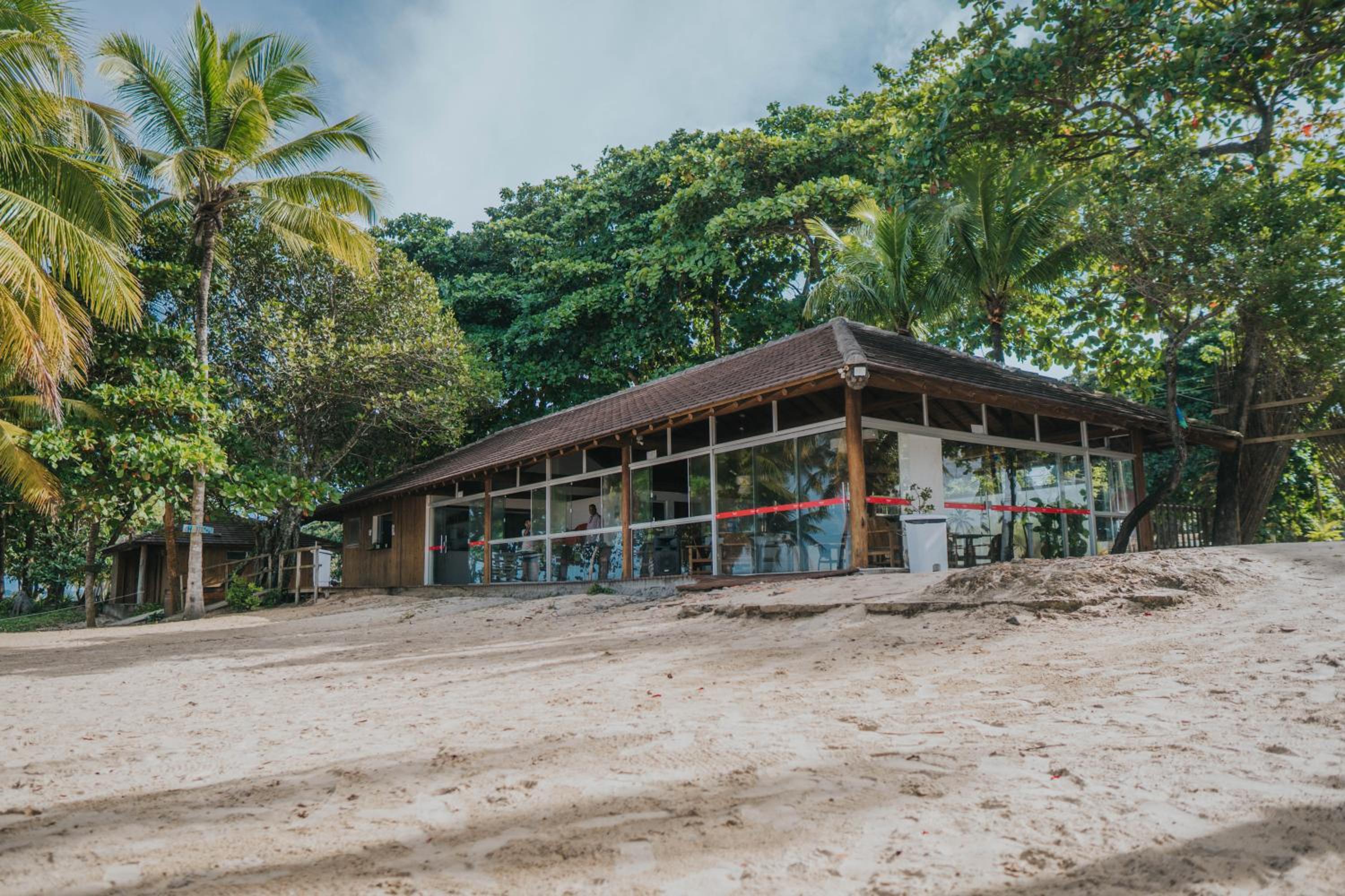 Limpeza das áreas comuns, como piscinas e o caminho até os quartos mais distantes, cheio de folhas e frutas caídas no chão há dias.