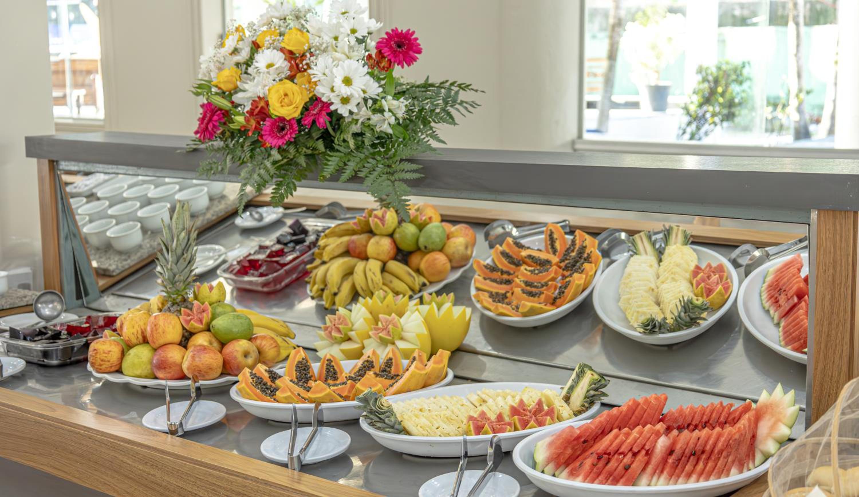 O café foi bom, mas poderia ter mais frutas. A localização do hotel é muito boa, fácil de ir pra qualquer lugar, alem de ter bastante coisa perto. A praia em frente é muito boa com bom restaurante.