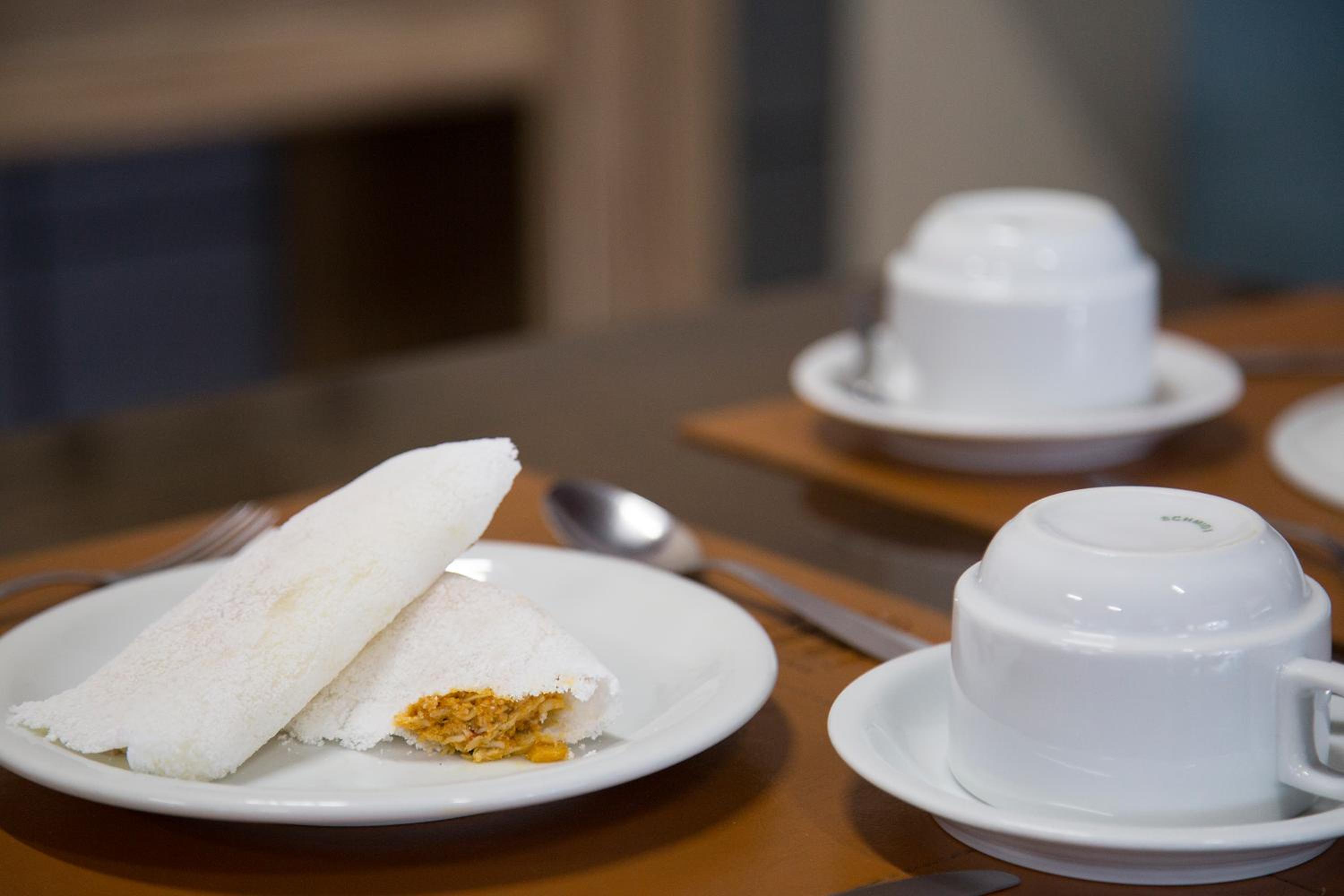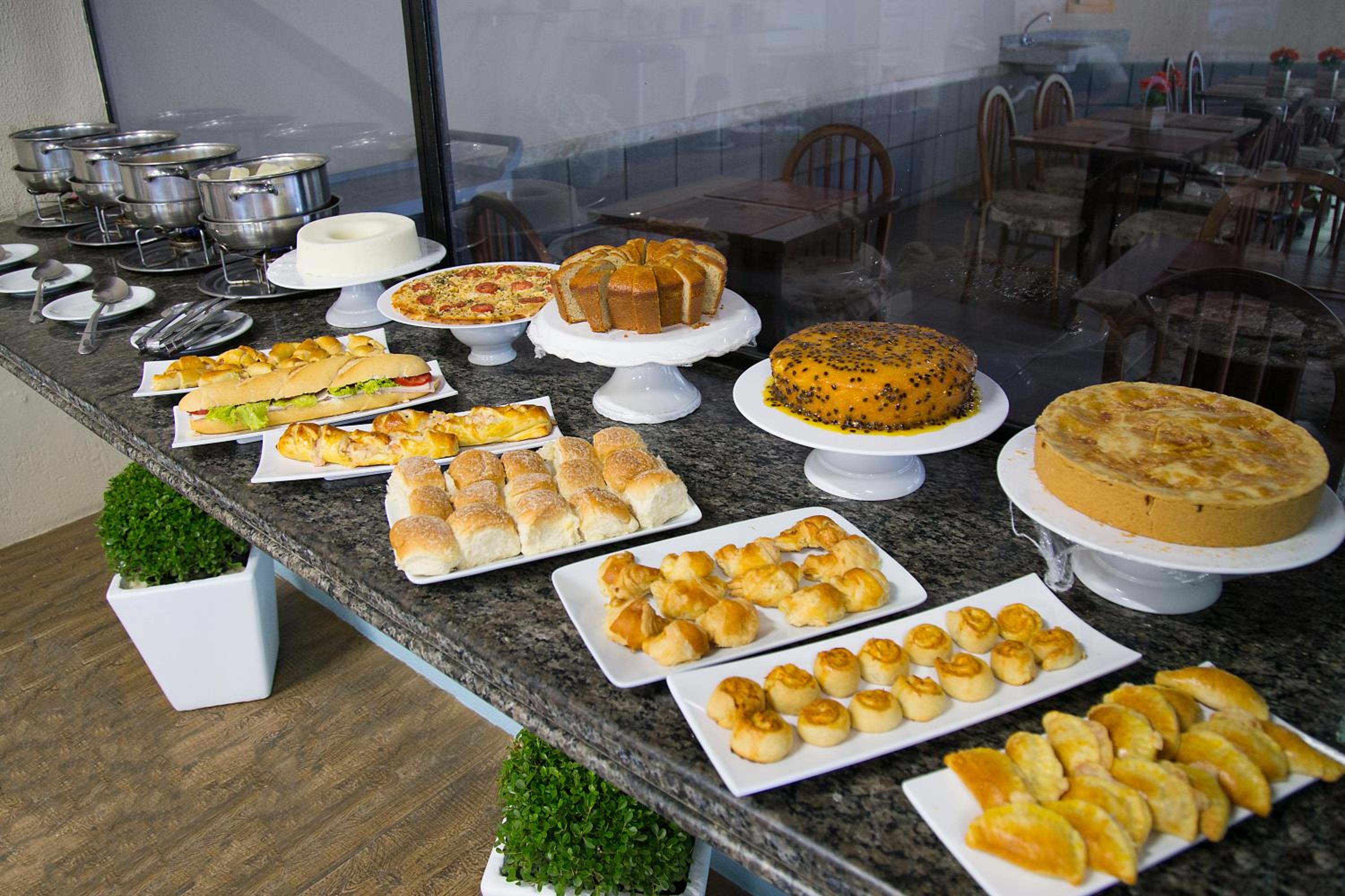 O Café da manhã é muito sortido, e tem muitas coisas deliciosas.