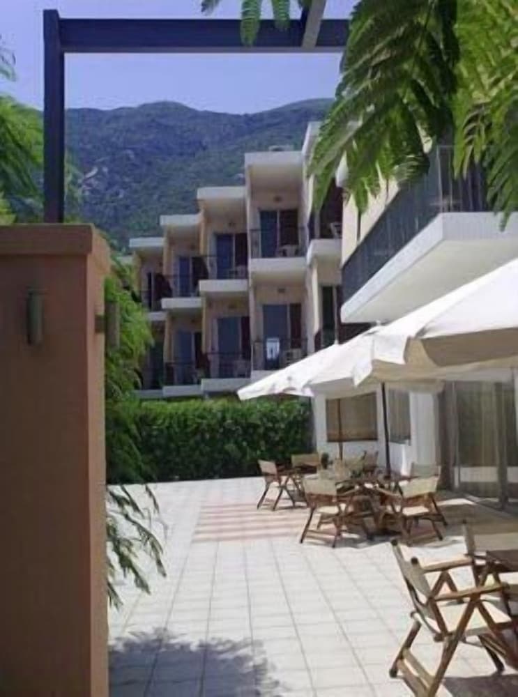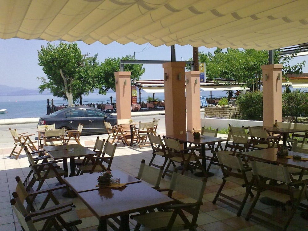 Efter en længere rejse, havde vi besluttet, at vi ikke havde lyst til at tage turen fra Athen og nordpå i et hug, og fandt dette hotel udfra kriteriet: ca 2 timer fra Athen, væk fra motorvejen, og tæt på strand.Hotellet er et fund. Navnlig den hjælpsomme og venlige betjening og de dejlige værelser med strandudsigt skal fremhæves.Byen, et strandresort målrettet grækerne med tivoli og pizzarestauranter, er måske ikke min kop te, men som stop over, eller måske udgangspunkt for udflugter ud i det græske land, er det perfekt, og med 2 timer til lufthavnen i Athen, genial i forhold til formiddagsafgange, hvis man vil undgå Athen. Vi er ikke i tvivl om at vi vender tilbage (og at personalet vil spørge til hvordan vi har haft det siden sidst).Vi havde iøvrigt vores hund med (en mellemstor sag), hvilket viste sig at være fuldstændig problemfrit.