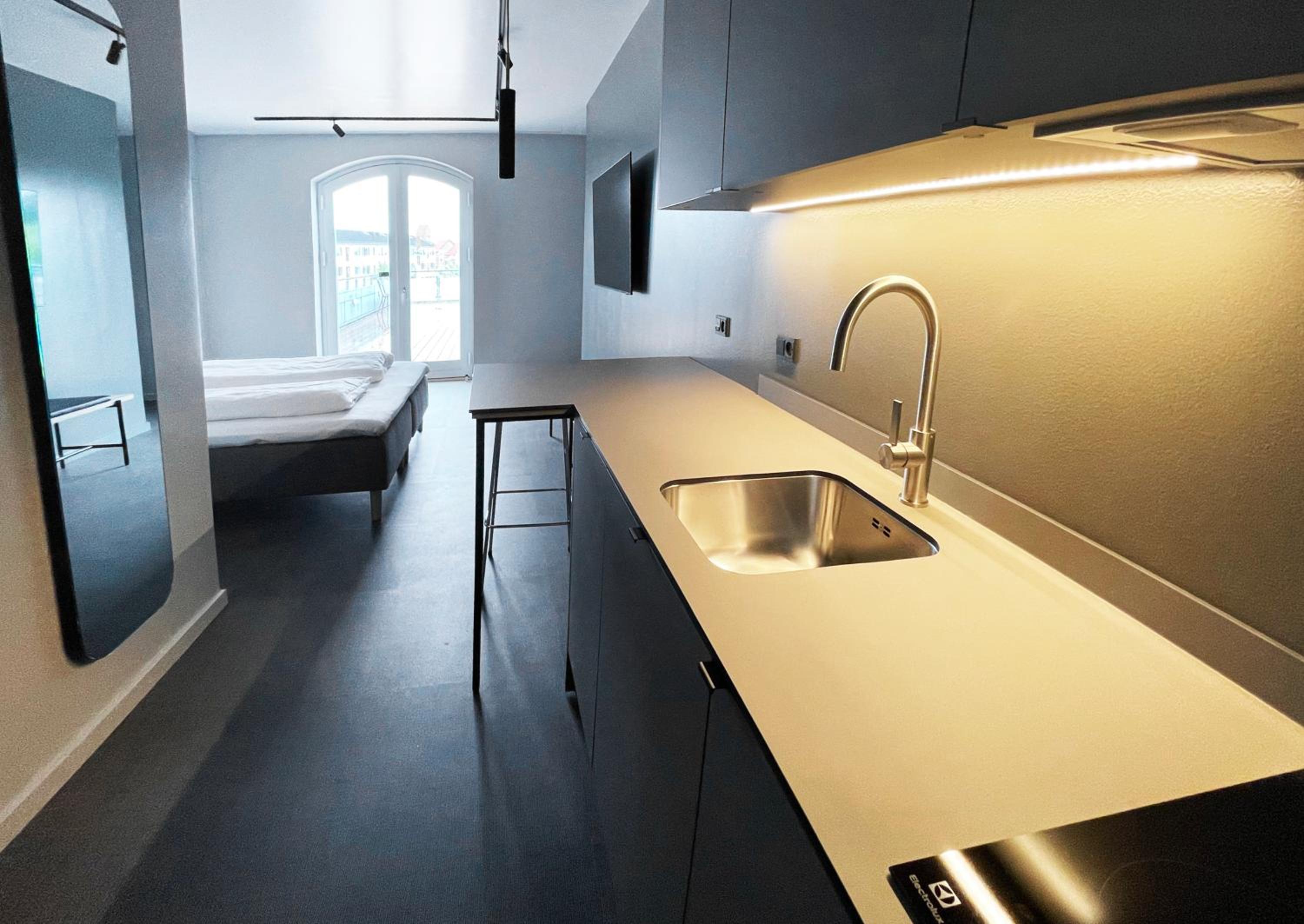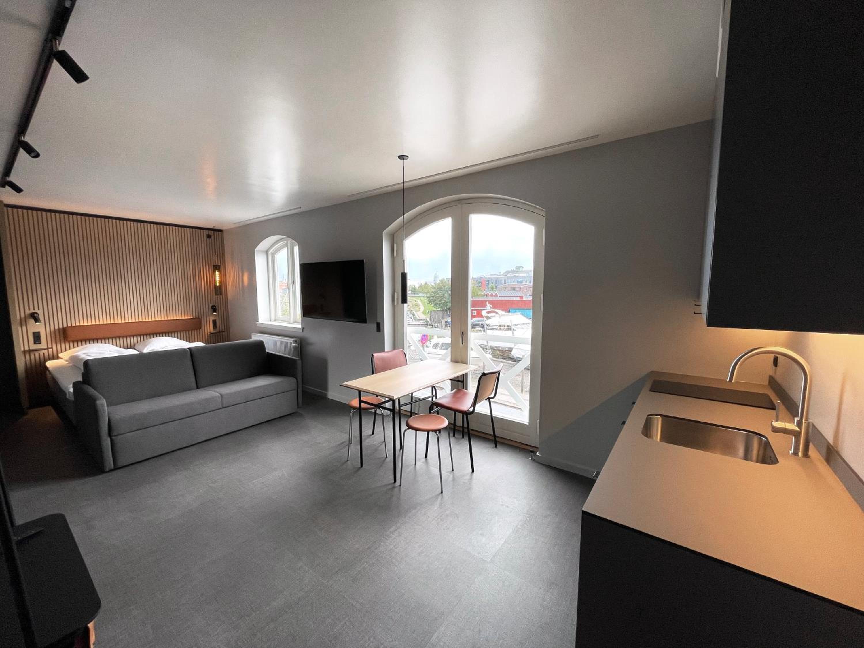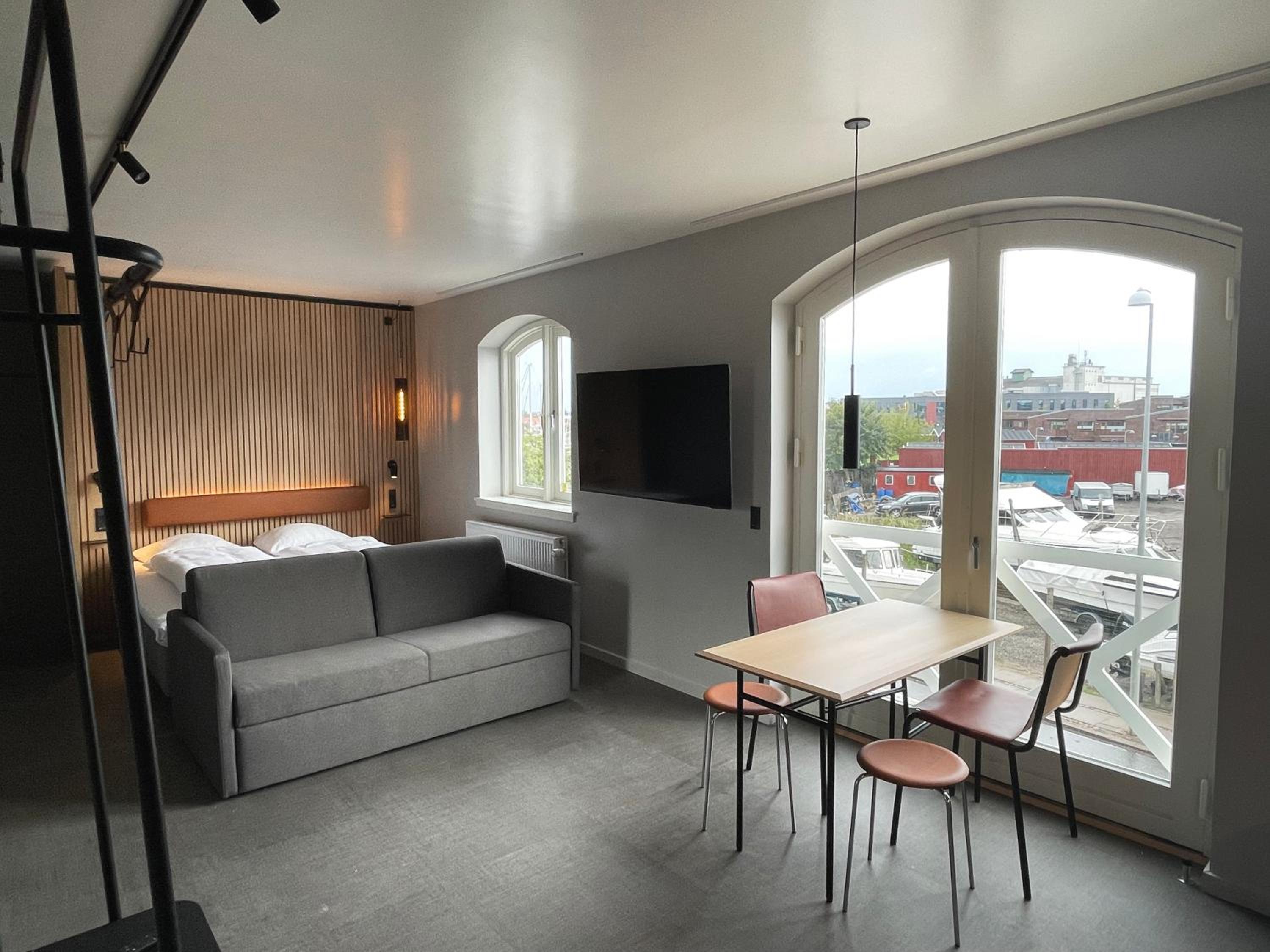 Efter at hotellet er blevet renoveret, får man bare meget for pengene. Hotellet fortjener en god omtale, da der virkelig er sket en opgradering i forhold til rengøring, og værelserne generelt. Denne gang havde vi et værelse med køkkenområde, så der var mulighed for selv at tilberede et måltid. Det nye Lounge område er enkelt på en smagfuld måde, med nyt interiør krydret med lidt historie fra det gamle hotel. Den gratis parkering på hotellets område er et stort plus. Beliggenheden var for os perfekt, med gå afstand til cafeer, shopping og hyggeligt havnemiljø. Det er super nemt med offentlig transport til København. S tog lige i nærheden.