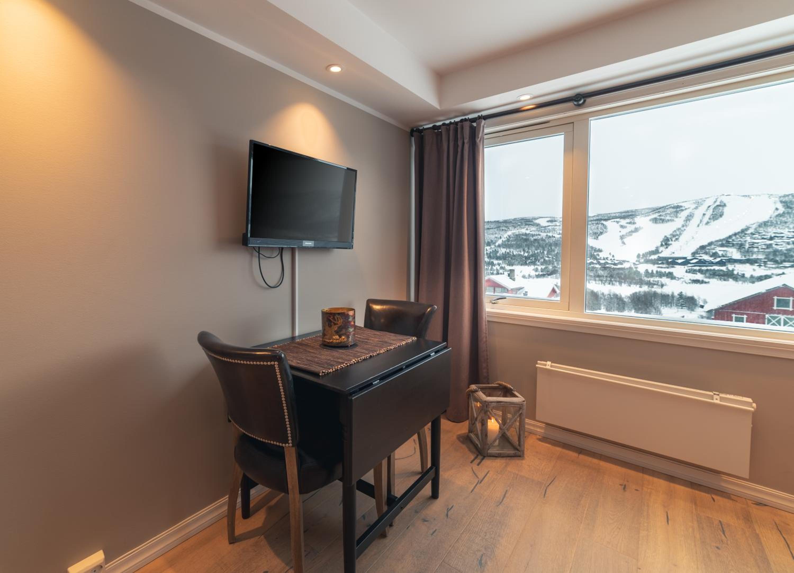 View was really nice both night and day during the winter holiday were you could see the snowslopes, it was really nice view .