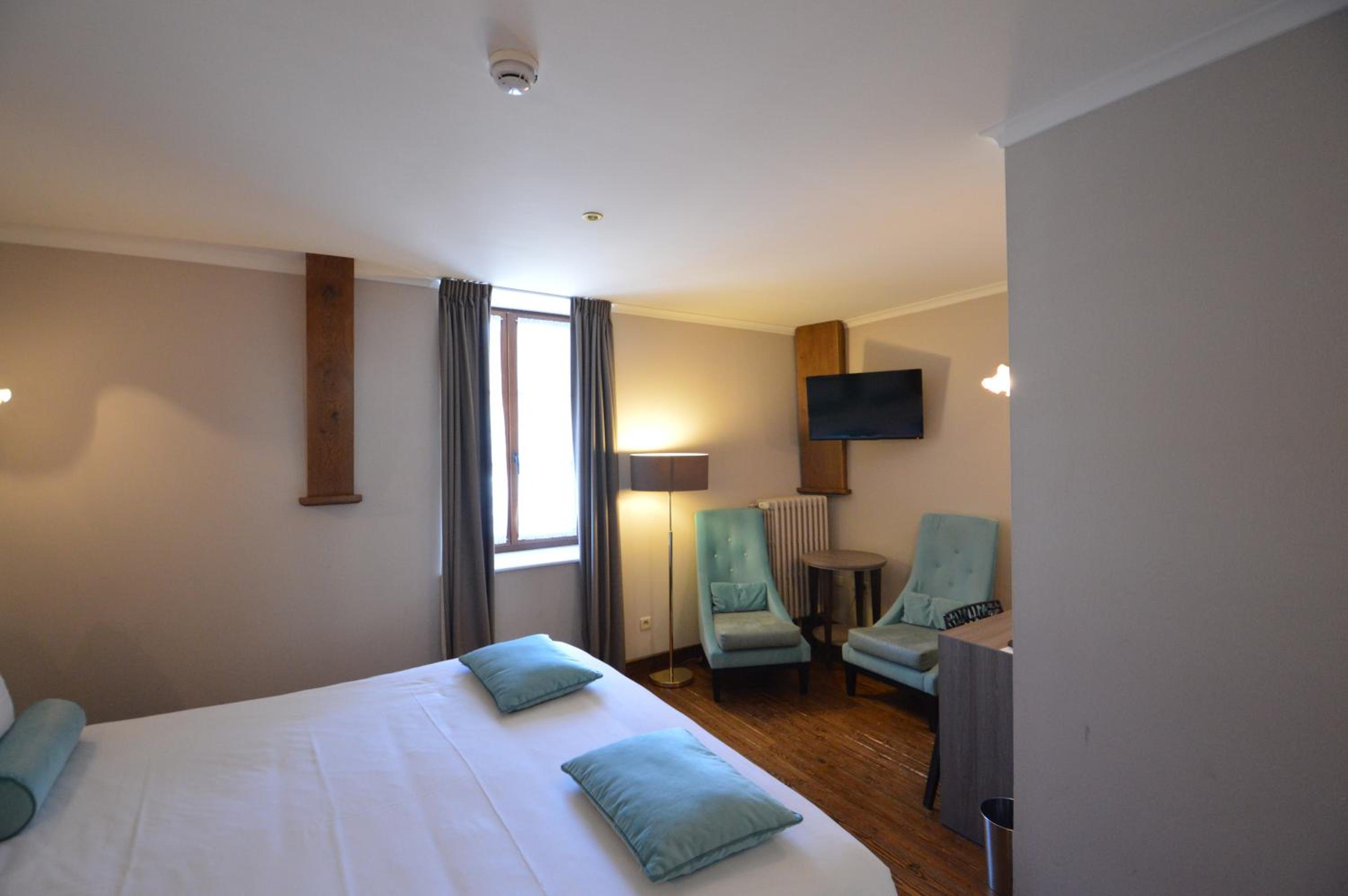 Historic Charm and Scenic Views - Step into a piece of history at Hotel de la Poste - Relais de Napoleon III, where the classical interior of the 1730 building complements the authentic room decor. Enjoy panoramic views of the Semois river valley and castle from most rooms, each adorned with elegant parquet flooring.