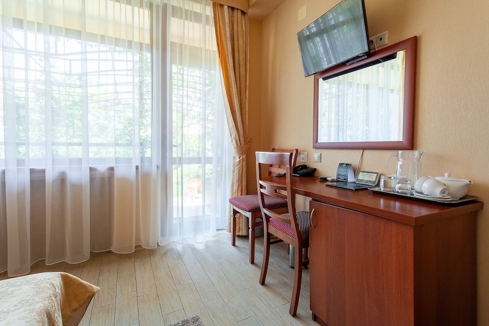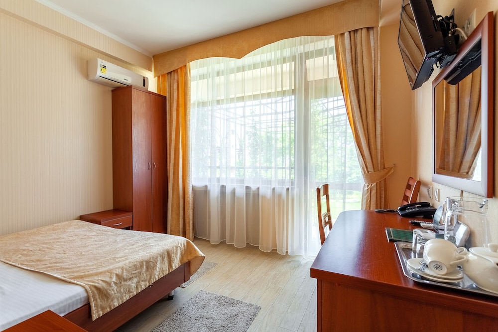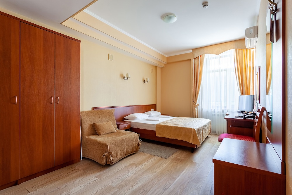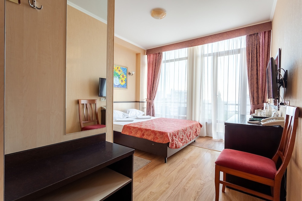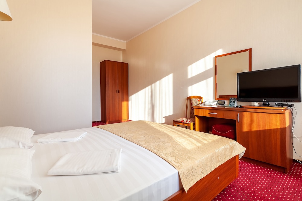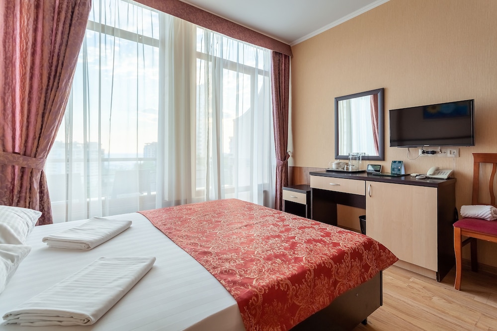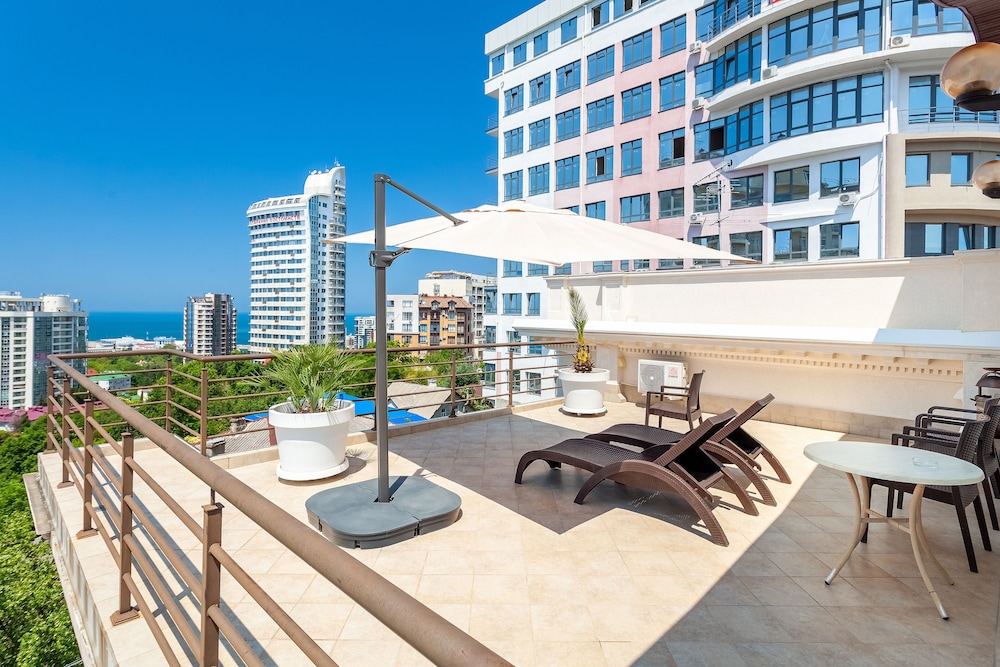 Good hotel with good location in Sochi. Nice terrace on the top floor with good view over Sochi and also a good and nice swimmingpool. Very good breakfast buffet. The staff was also nice and spoked good english. The WIFI worked perfect.