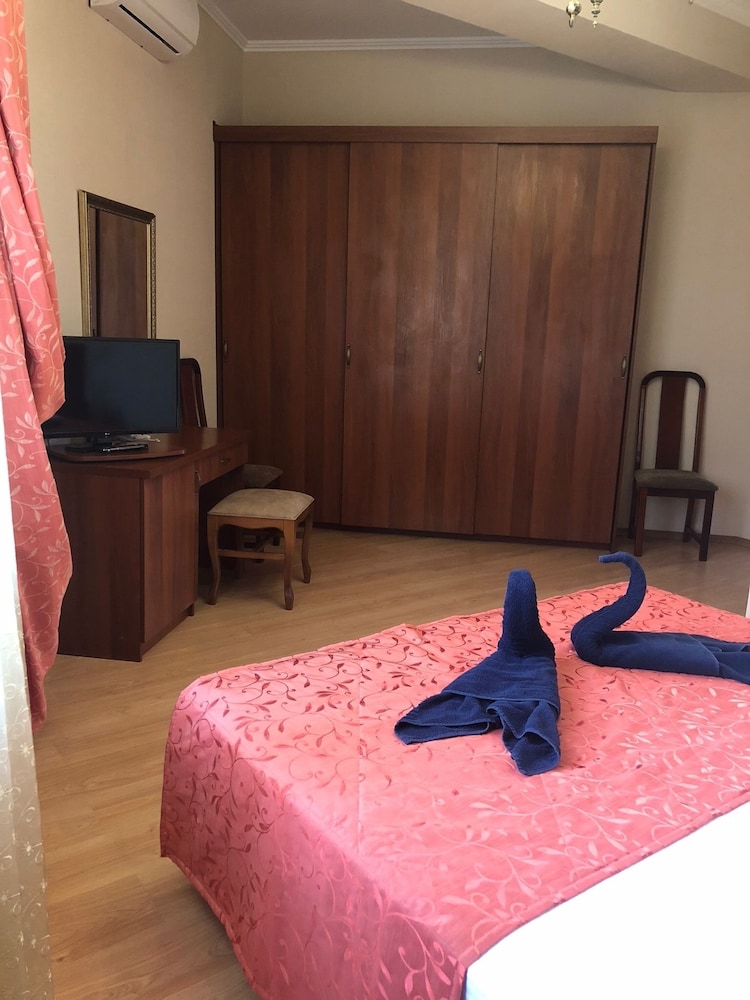 Ездили с друзьями на майские праздники отдыхать. Отель нам понравился, вкусная и разнообразная еда, приветливый персонал, территория отеля прекрасно обустроена, есть бассейн, терраса со столами и стульями, в отеле много общих балконов с шикарным видом, также в отеле есть выход на крышу с панорамным видом, где можно прекрасно отдохнуть. От нашей поездки остались самые лучшие впечатления. Очень многие писали, что тяжело к отелю подниматься, насчет этого не могу ничего плохого сказать, так как мы молодые, нам было это не в тягость. Несмотря на полностью заполненный отель, парковочные места были практически всегда, а если их не оказывалось на территории, то возле ворот их полно! Номера очень чистые и уютные, хочется выказать свою благодарность уборщицам, которые прекрасно справлялись со своими обязанностями. Во втором корпусе есть большой зал, в котором стоит стол для пинг-понга. Также там находится множество игрушек для детей, поэтому на мой взгляд это очень хорошее место для отдыха с детьми. Район, в котором стоит отель, тихий. Вай-фай в отеле очень хороший! Возможный минус - далековато от пляжа, как может показаться семьям с детьми или пожилым людям.