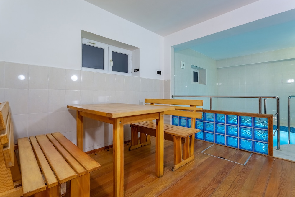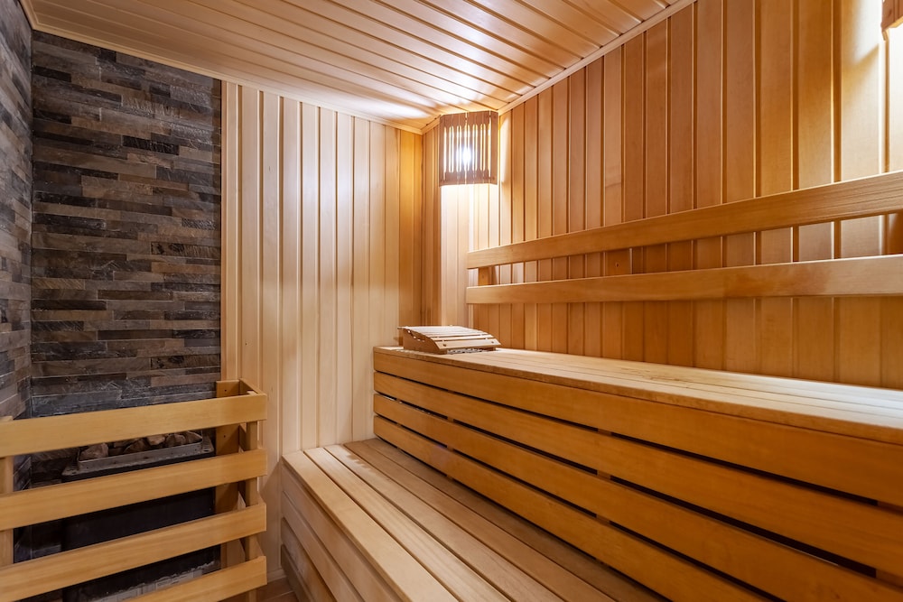 Indulge in the outdoor pool and sauna for a revitalizing experience. Unwind in the lobby by the cozy fireplace or explore with tour assistance.