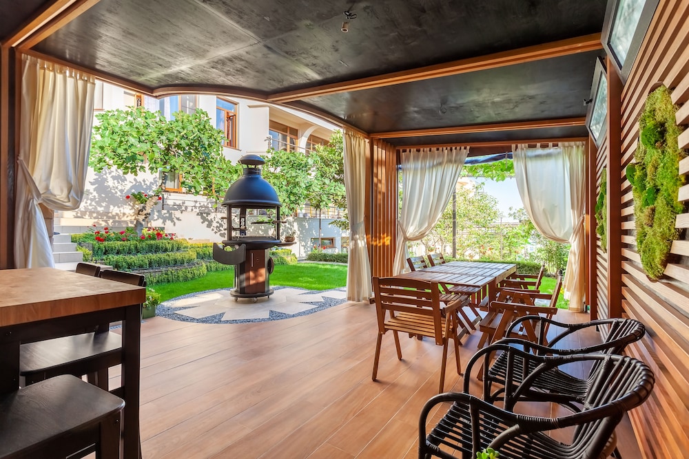Уютный дворик и терраса, есть небольшой бассейн.