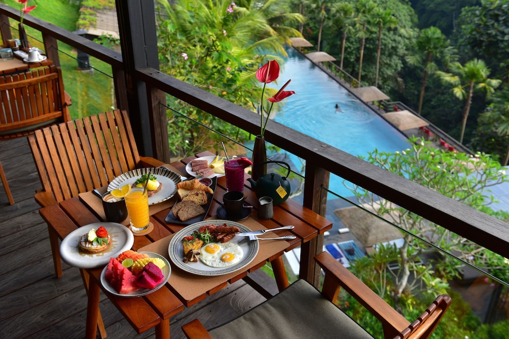 Balayımız için villa tipi odada 4 gece kaldık. Tüm personel güleryüzlü ve yardımseverdi. Özellikle Tana’ya şoförlük ve tur rehberliği (ekstra ücret ile (araba başı 60 dolar kadar (tek araba 4-6 kişi alıyor fakat biz iki kişiydik sadece) , yaklaşık 6-7 saat kadar Ubud kuzeyini gezdik) için ayrıca teşekkür ederiz. Yemekleri çok lezzetiyldi, otelin kullanım alanları sakin ve huzurluydu (kahvaltı dahildi, seçenek çok kahvaltı + tatlı şeklinde seçiyorsunuz; lunch ve akşam yemeği ekstra fakat ücret olarak Türkiyeye göre çok avantajlı (Lüks bir otel olmasına rağmen) ve fine dining hizmedi de alabileceğiniz bir yer). Otelin shuttle hizmeti (ücretsiz) de mevcut belirli saatlerde sizi Ubud merkeze bırakıp, belirli saatlerde alabiliyorlar.) Ücretsiz yoga seansları mevcut, spa ücreti ekstra, pahalı değil ve ambians olarak otelin her yeri olduğu gibi şahane. Orman içerisinde sessiz sakin, huzurla vakit geçirebileceğiniz bir deneyim. Bali tatili için beklentimizi karşılayan bir otel oldu. Çok mutlu ayrıldık, muhteşem bir balayı deneyimi ve tatil yaşadık; tüm ekibe her şey için çok teşekkür ederiz.