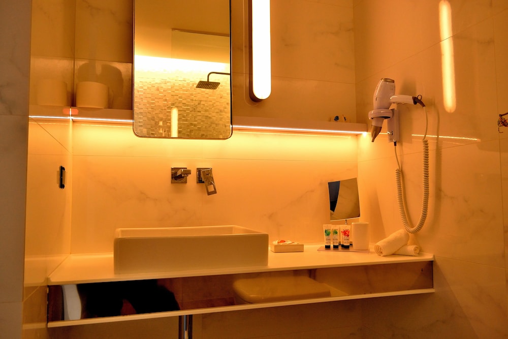 About rooms you will find all you need to work (including strong Internet access) and possibility to connect usb, hdmi, ... really rare for this category of hotels! Good amenties and coffee, tea set to enjoy day time with fridge. Big Italian shower in bathroom, I liked!