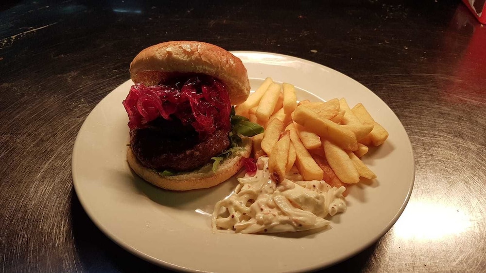 We had a very warm informative welcome. The room was at the back which helped it be quieter when the private parties could be loud when they were on in the function room. It looks as if some updating is happening and needs new window frames and closers. The bed was comfy. Hospitality tray was great. In the bar the staff were great. You were served quickly and they kept the bar tidy. They were very friendly. We had bar sharing plate snack which was amazing. We didn’t have breakfast as not breakfast eaters so can’t comment about that.
